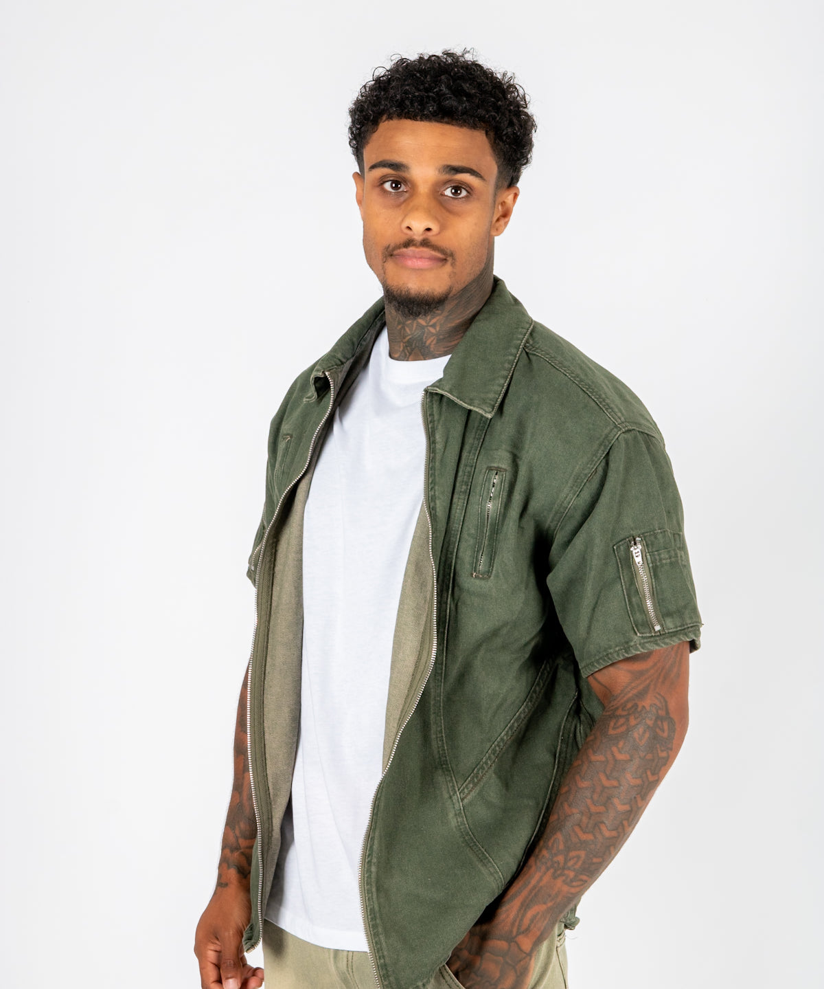 Khaki Panelled Detail Denim Shirt
