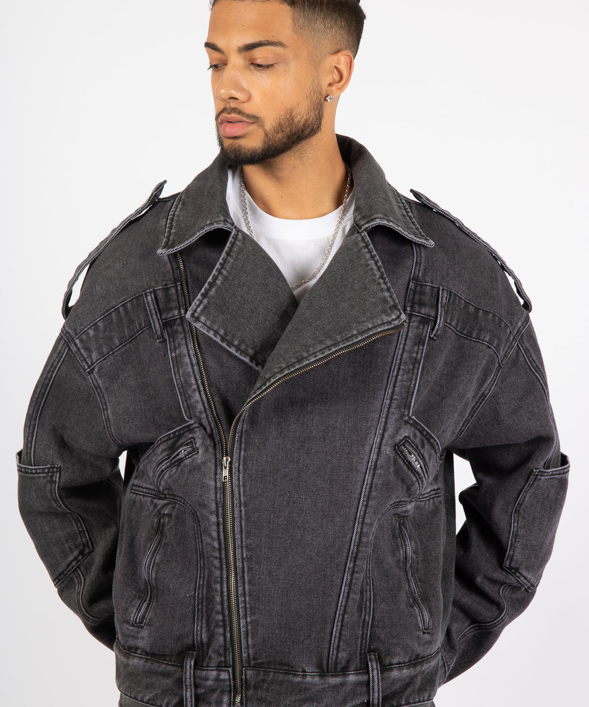 Washed Black Biker Jacket