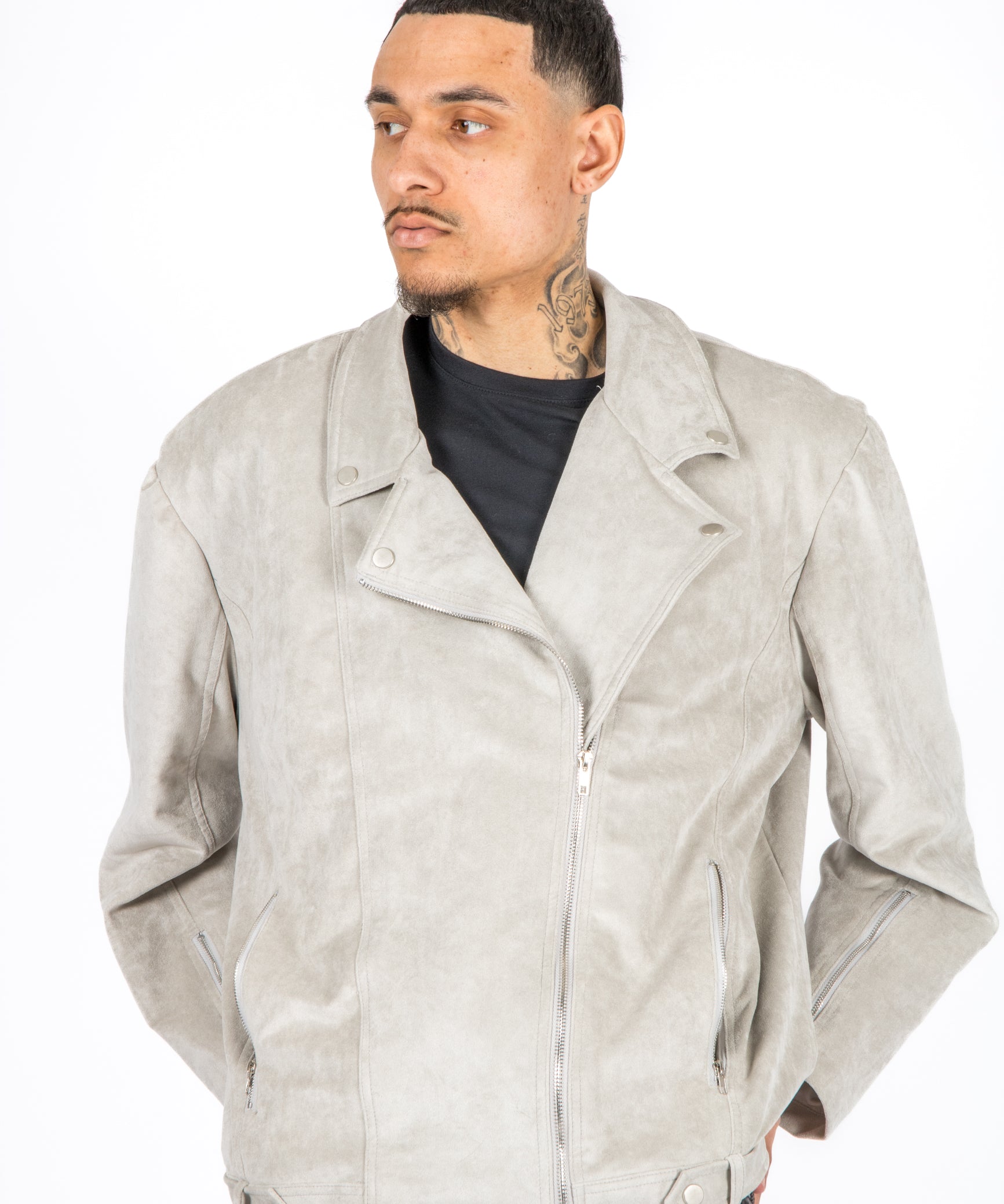 Stone Suede Biker Jacket