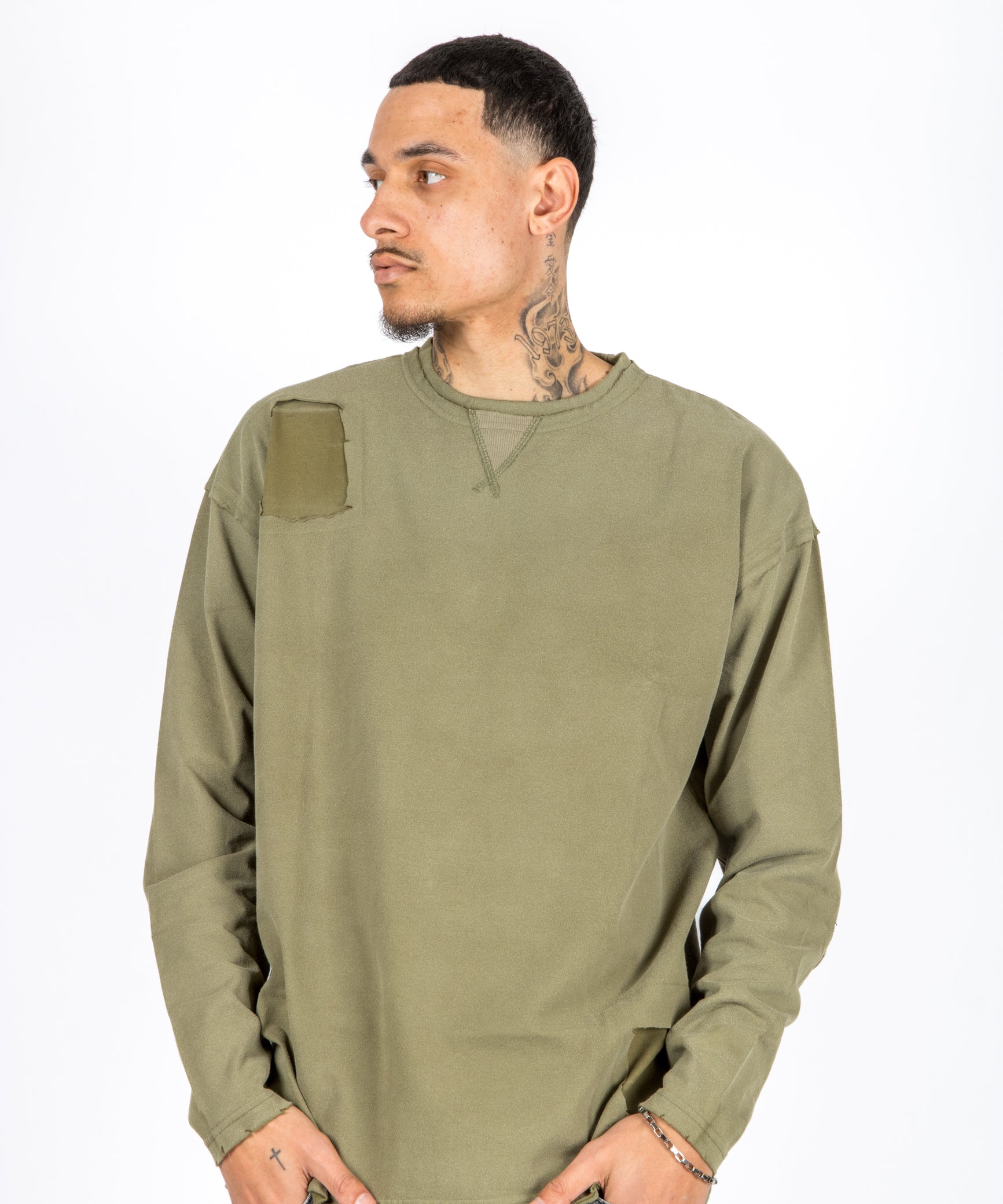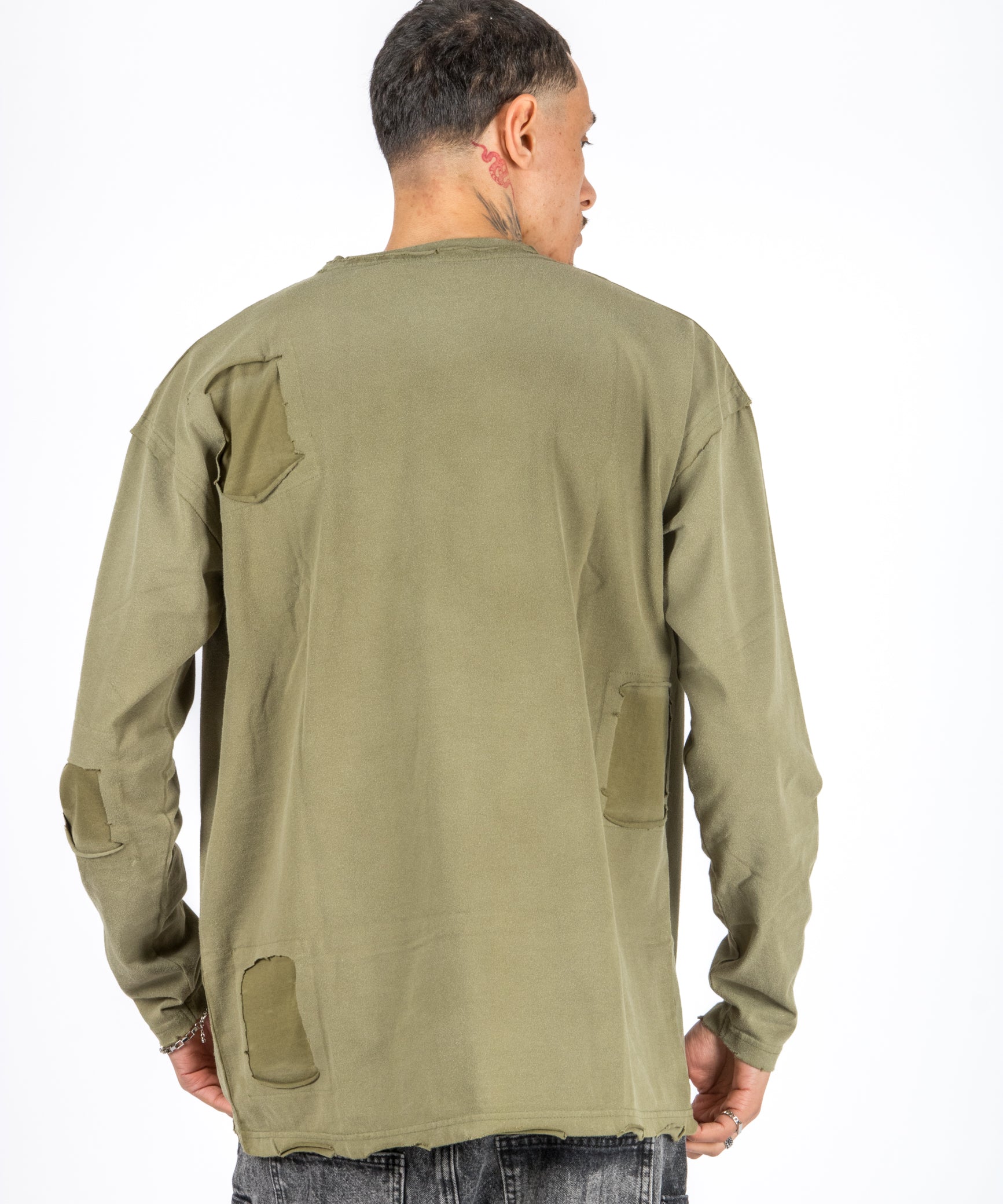 Khaki Double Layered Distressed Long Sleeve T-Shirt