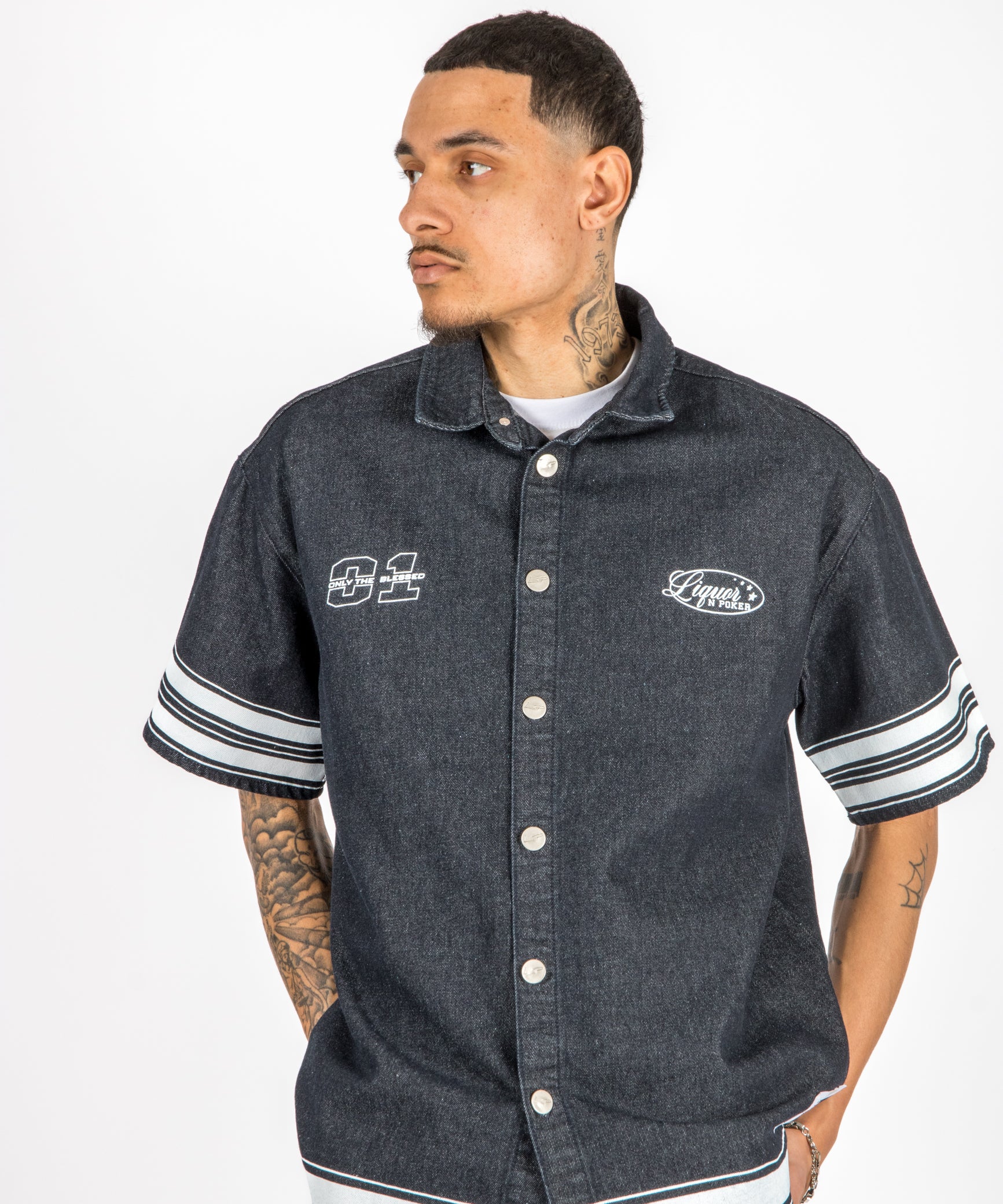 Oversized Varsity Denim Shirt
