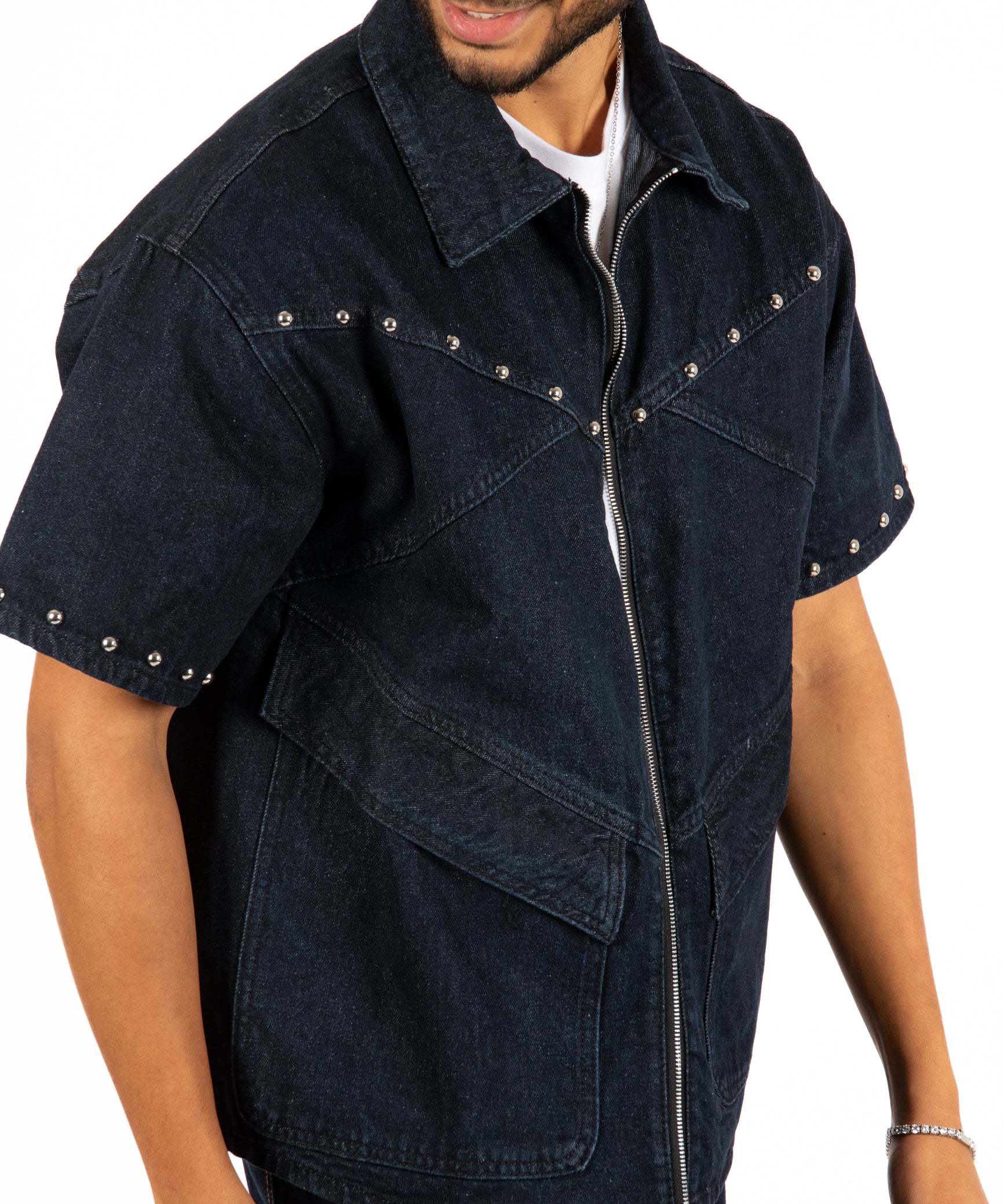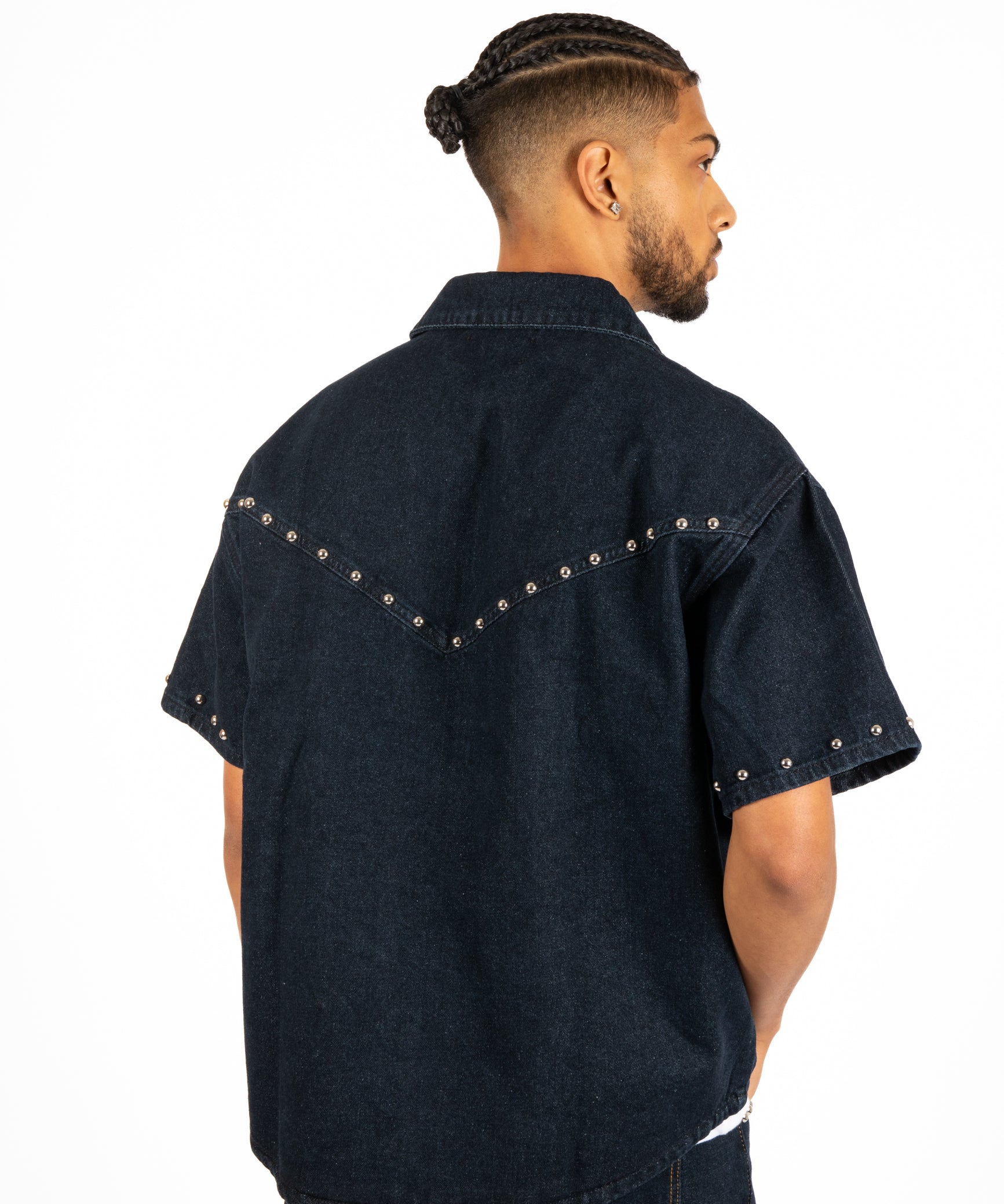Indigo Denim Shirt With Stud Detail