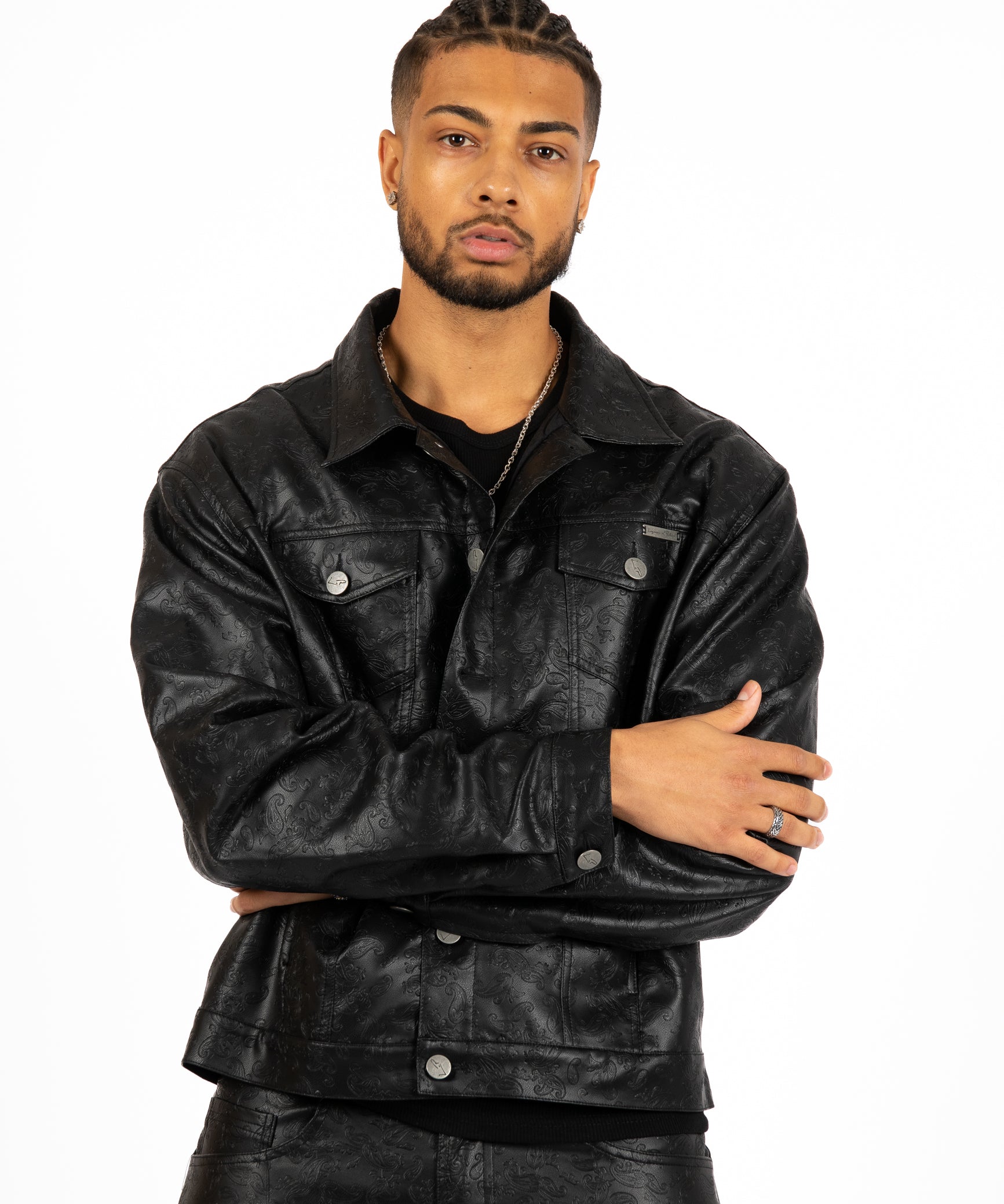 Black Pu Paisley Embossed Jacket