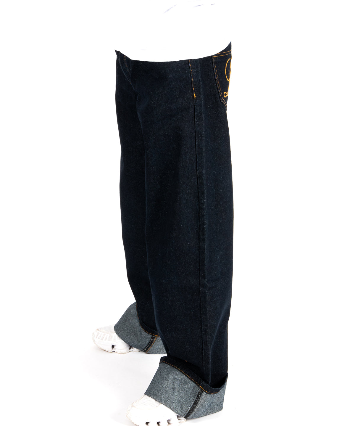 Raw Indigo Mid Rise Contrast Stitch Baggy Jeans