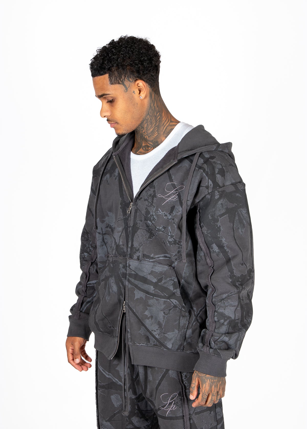 Rider Biker Panelled Denim Jacket in Khaki & Black