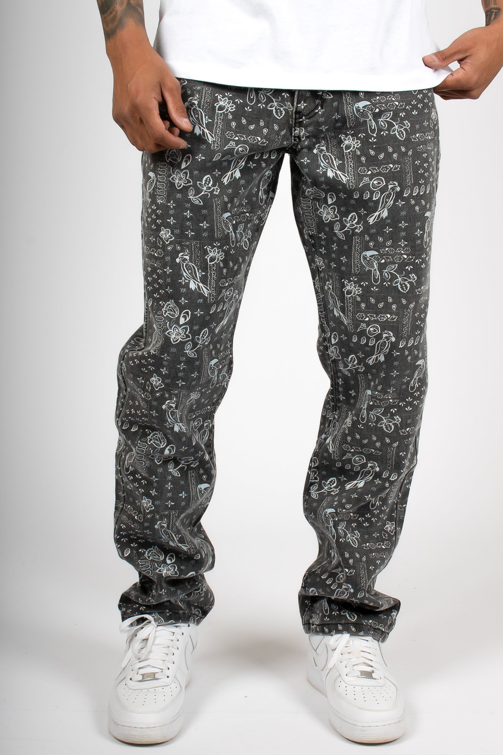 Introducing our Straight Leg Denim Jeans in Black Paisley – a fusion of classic style and modern edge. These jeans are designed for those who appreciate both fashion and comfort. Crafted with precision from premium denim, they offer a comfortable straight-leg fit while showcasing a unique black paisley pattern for a touch of individuality. Versatile and timeless, these jeans are perfect for any occasion, whether you're dressing up or keeping it casual. Elevate your denim game with this statement piece that effortlessly blends contemporary design with a touch of rebellion.