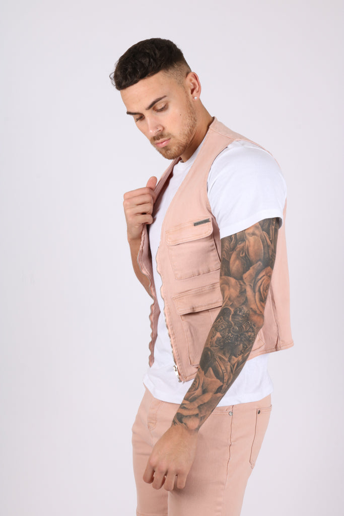Introducing our Utility Soft Pink Denim Gilet Vest, the perfect blend of style and functionality. Crafted with meticulous attention to detail, this vest offers a trendy and versatile addition to your wardrobe. The soft pink hue adds a touch of elegance, while multiple pockets provide ample storage for your essentials. Whether you're layering it over a tee or dressing up for an outdoor adventure, this vest delivers both fashion and utility with a contemporary twist. Elevate your outfit effortlessly with this essential piece.
