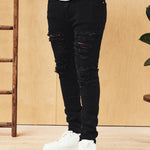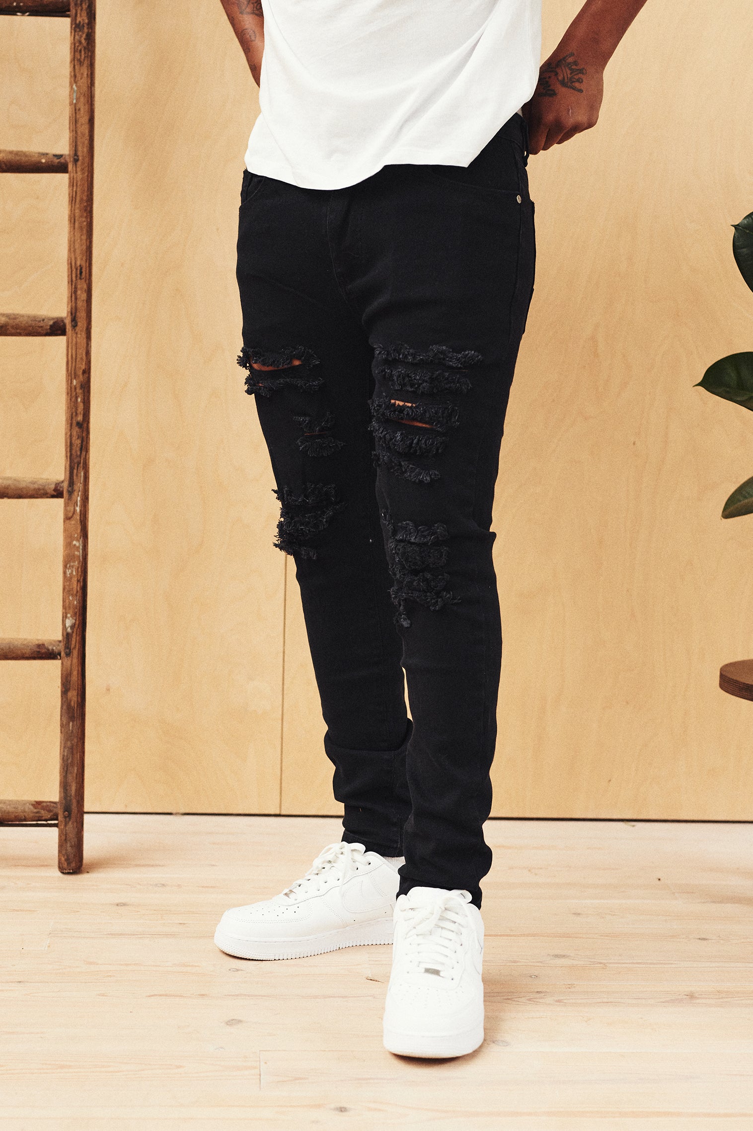 Logan Stretch Skinny Fit Jeans With Rips In Black