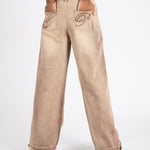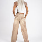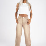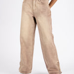 Sand Wash Brown Contrast Stitch Barrel Varsity Jeans