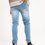 Logan Stretch Skinny Distressed Denim In Indigo Stonewash