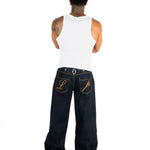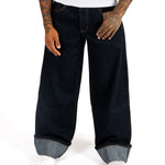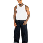 Raw Indigo Mid Rise Contrast Stitch Baggy Jeans