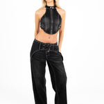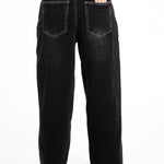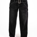 Washed Black Contrast Stitch & Buckle Detail Baggy Jean