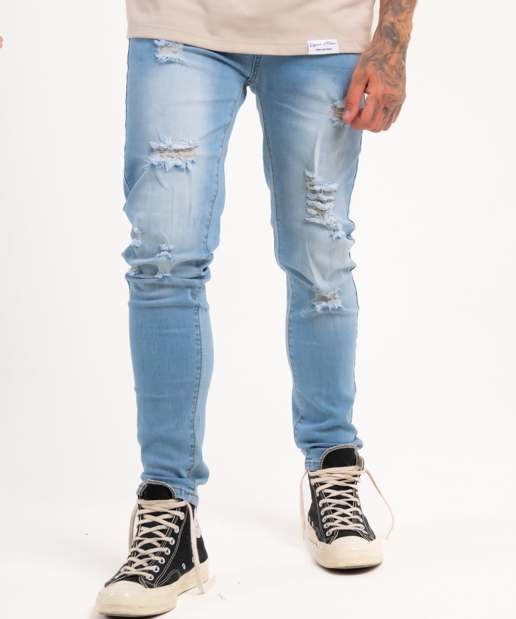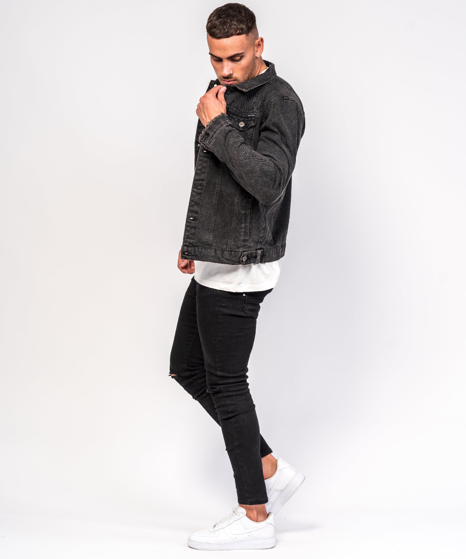 Logan Skinny Stretch Jeans In Light Black Twill With Ripped Knees