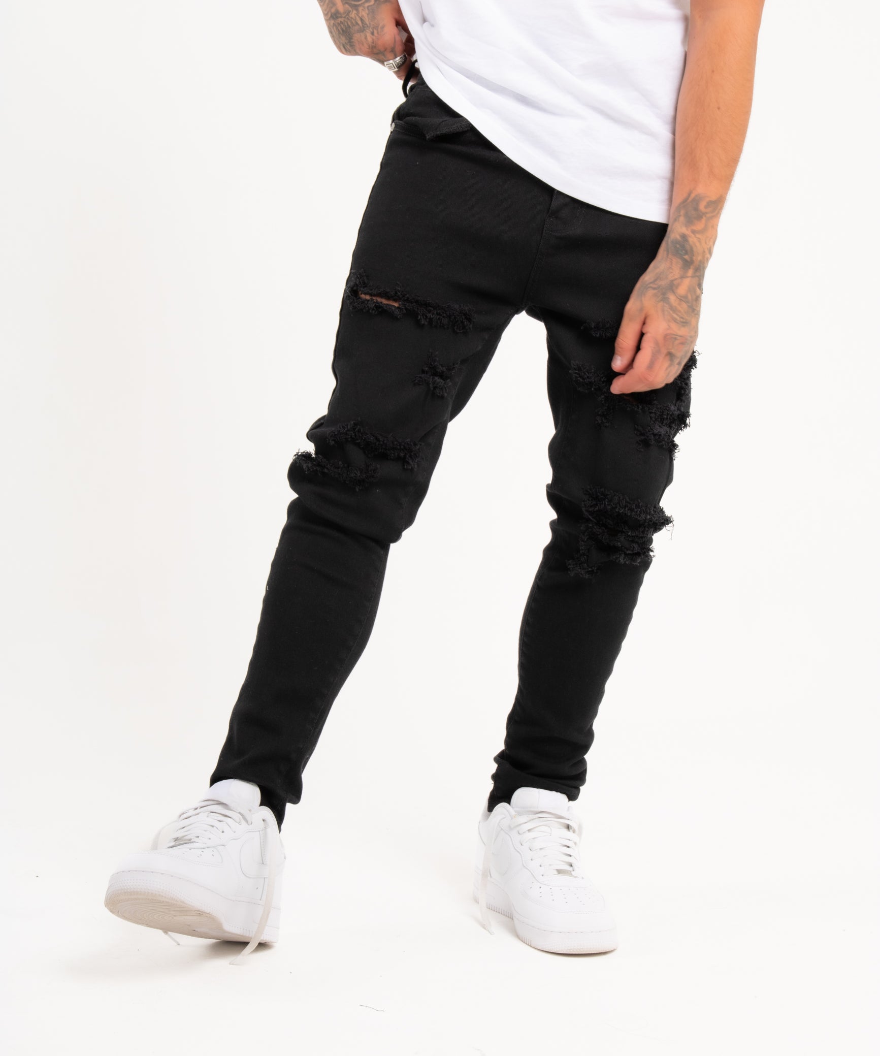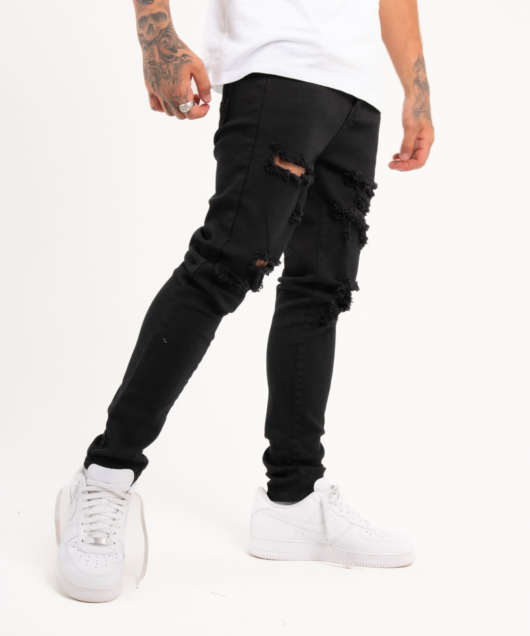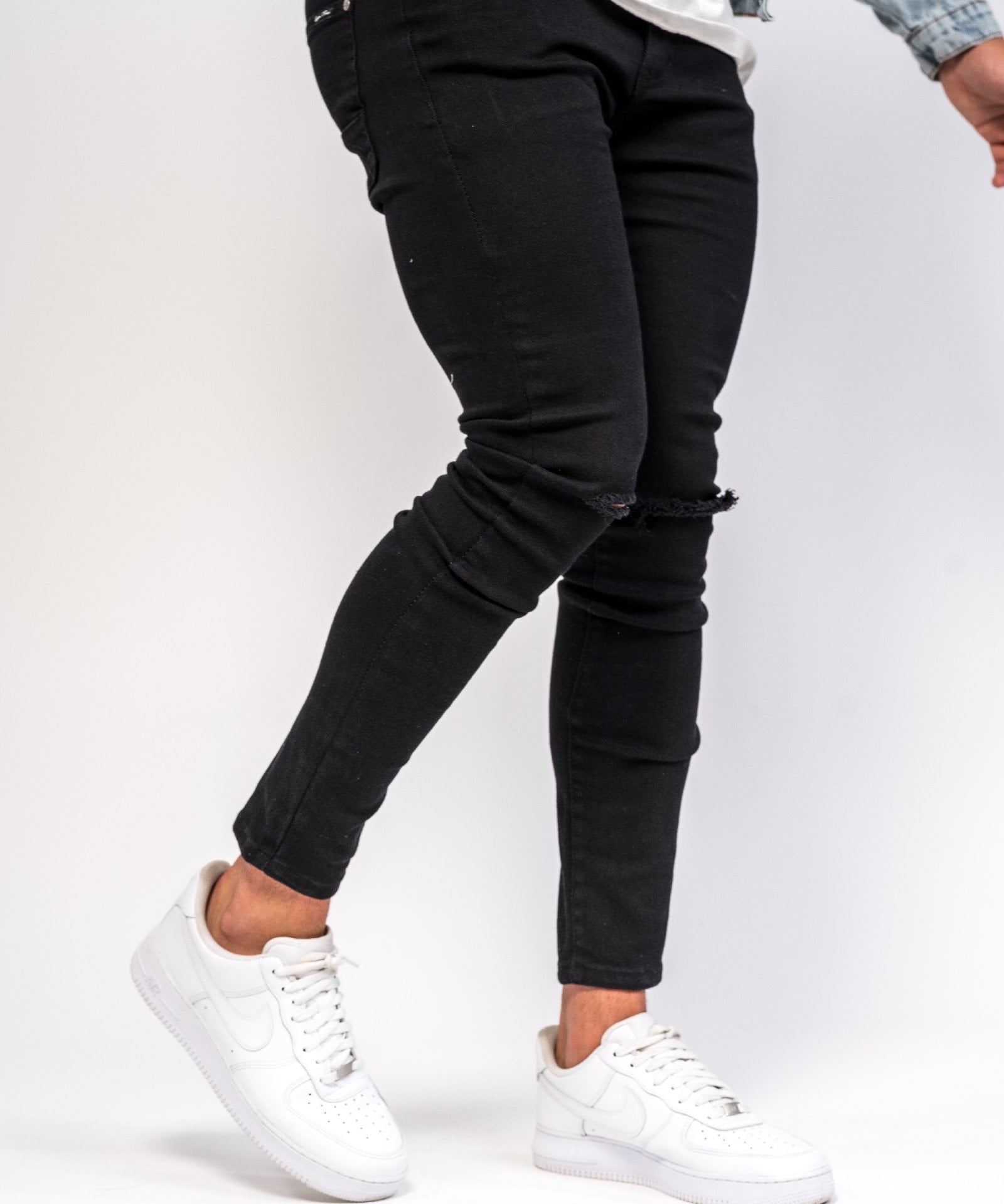 Logan Stretch Skinny Fit Jeans With Rips In Black