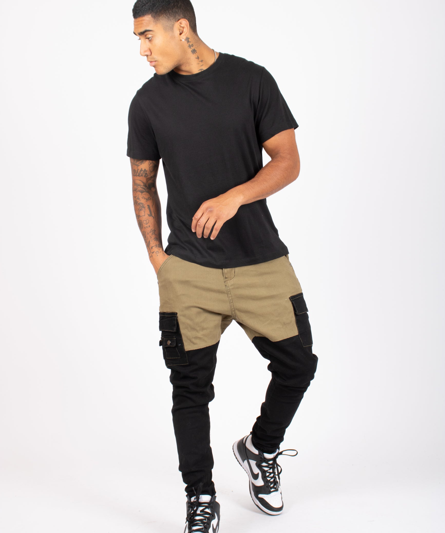 Faro Black & Khaki Contrast Relaxed Denim Jogger