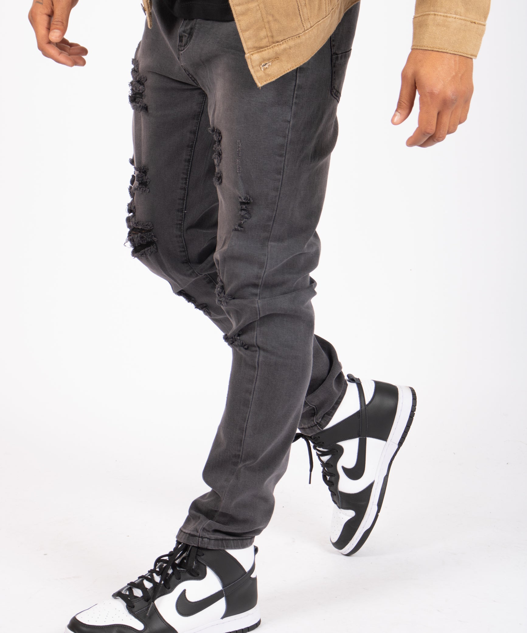 Logan Washed Charcoal Skinny Fit Jeans With Rips