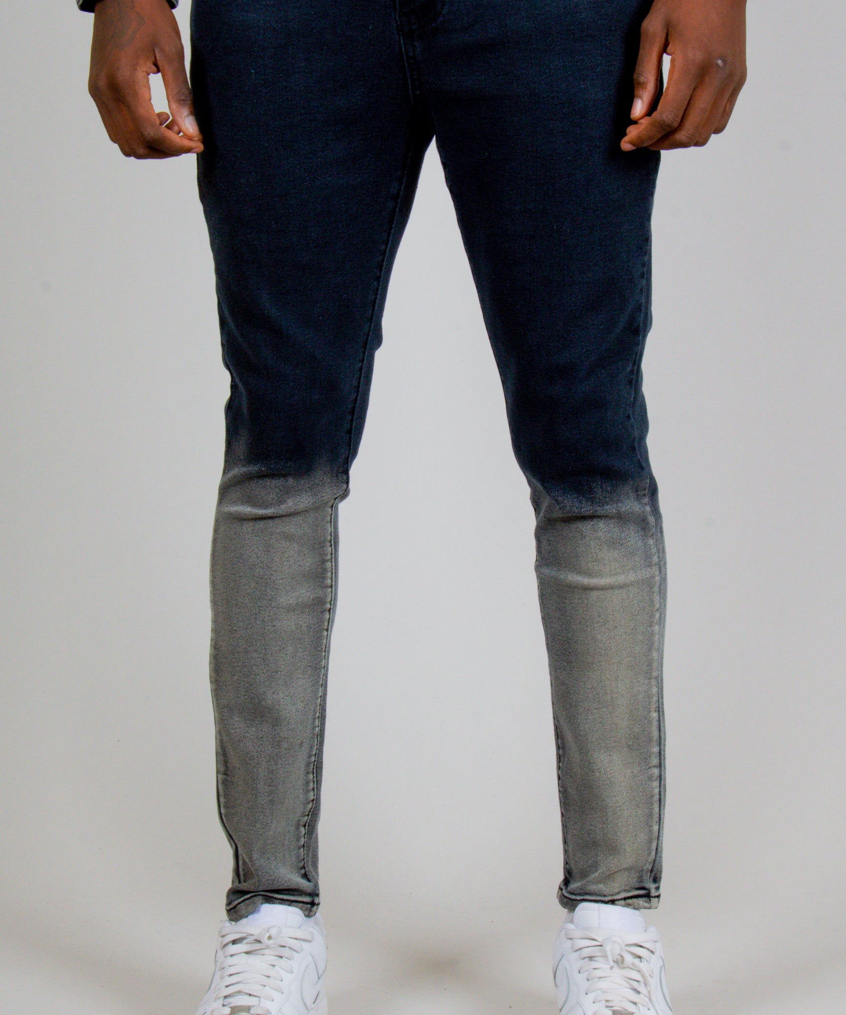 High Rise Skinny Two Tone Denim Flare In Washed Black