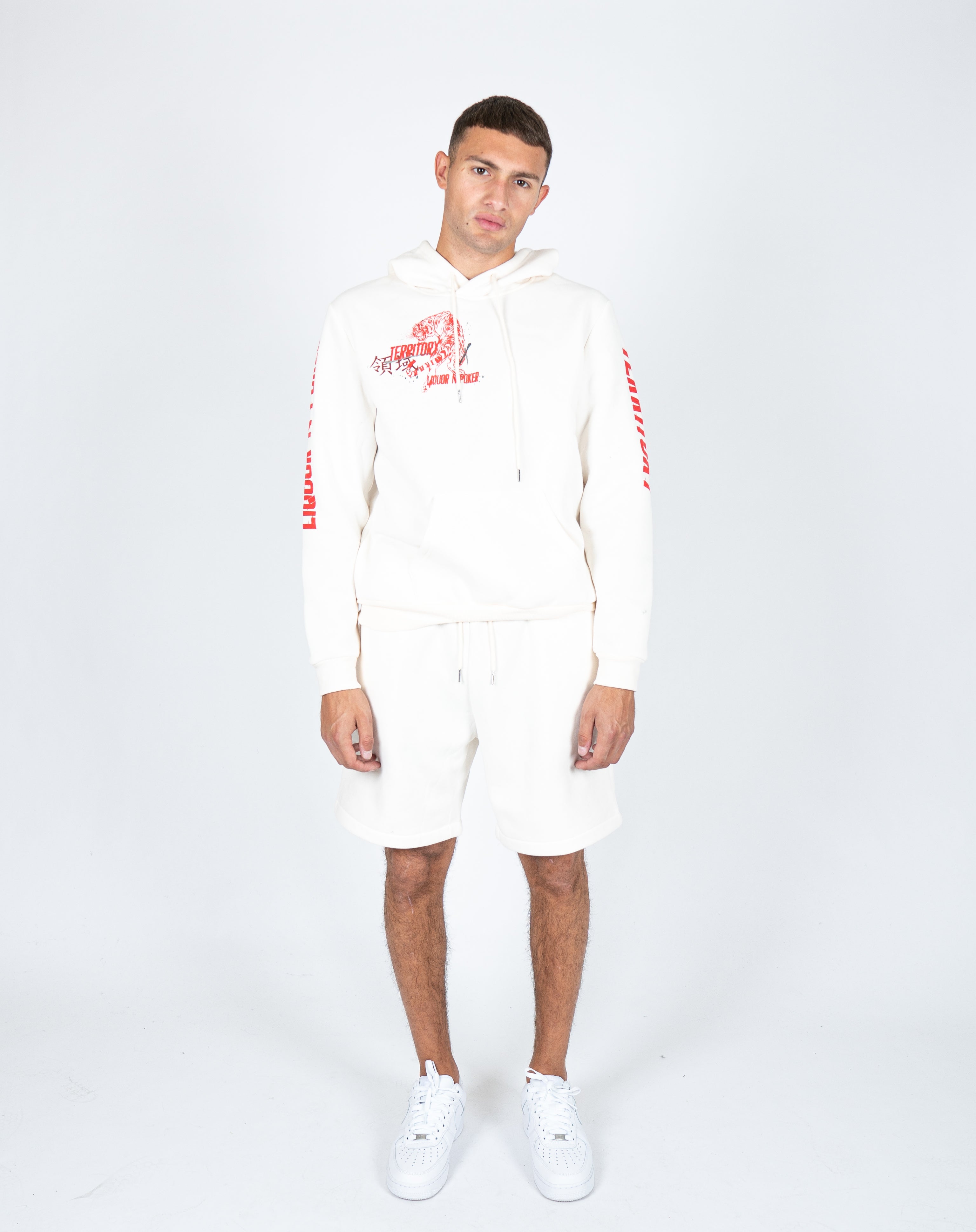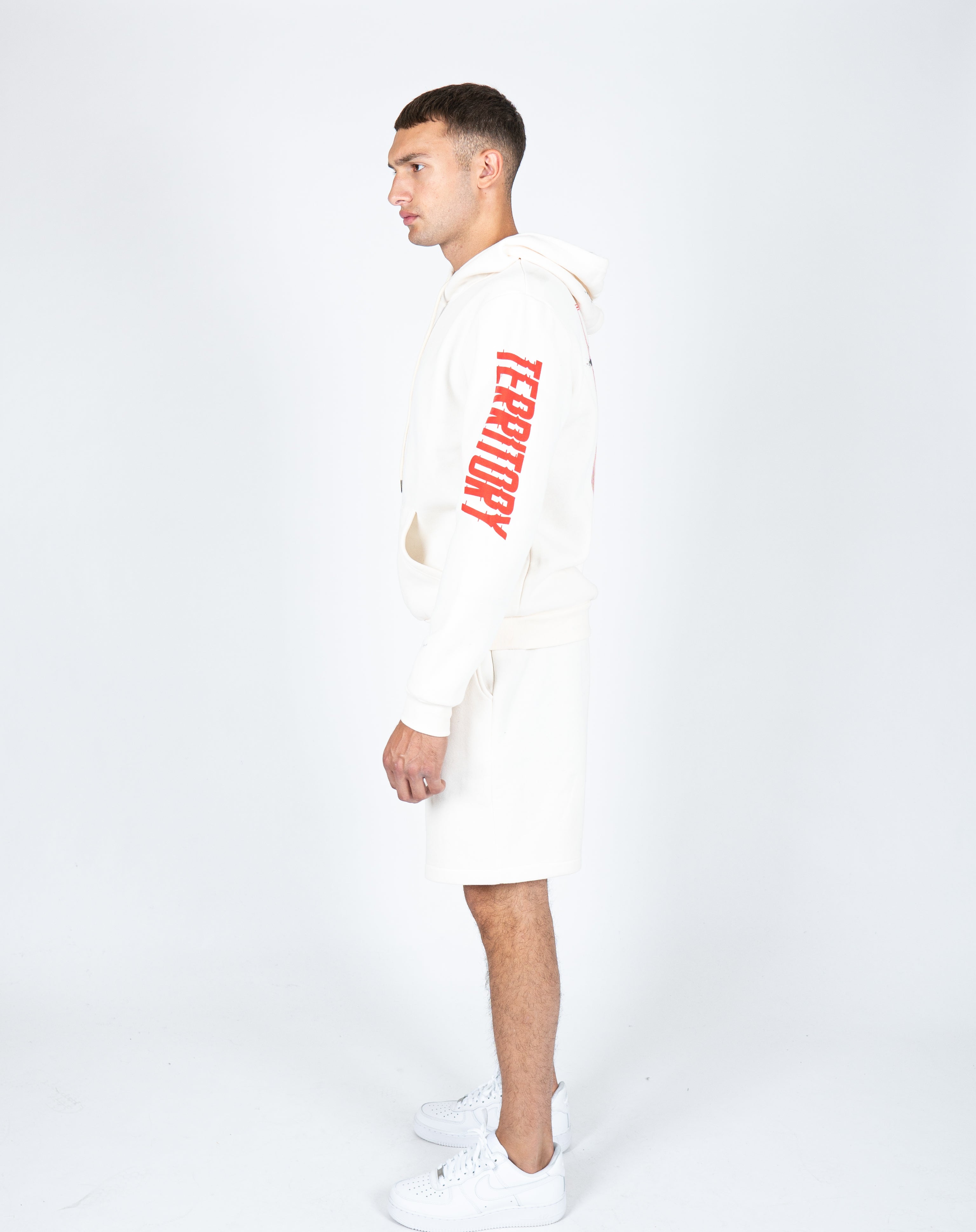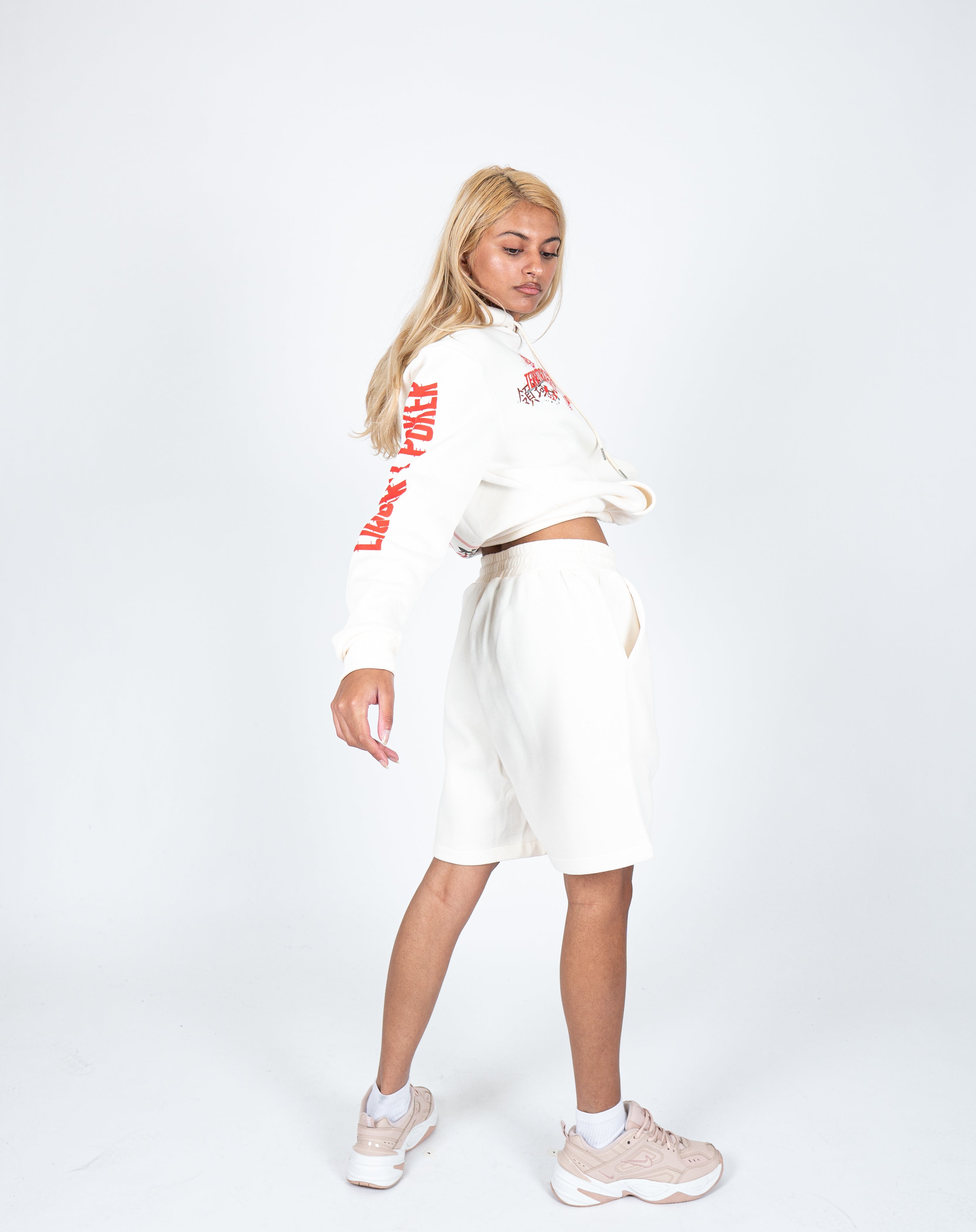 Urban comfort meets effortless style. Cozy jersey shorts in fresh off-white