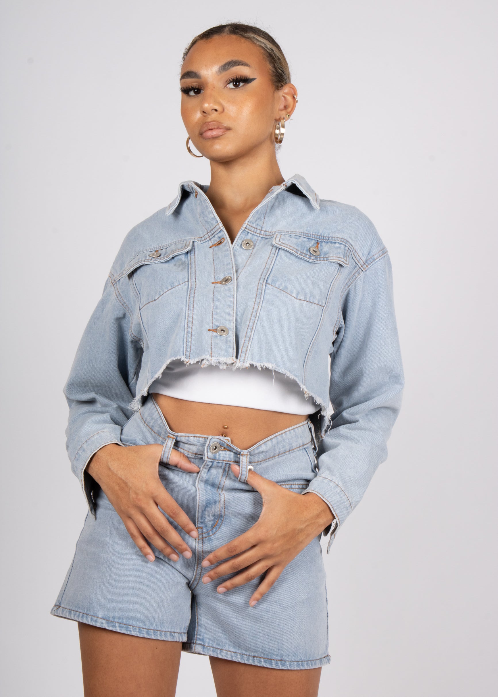 Dakota Oversized But Cropped Denim Jacket With Rope Pull Detail