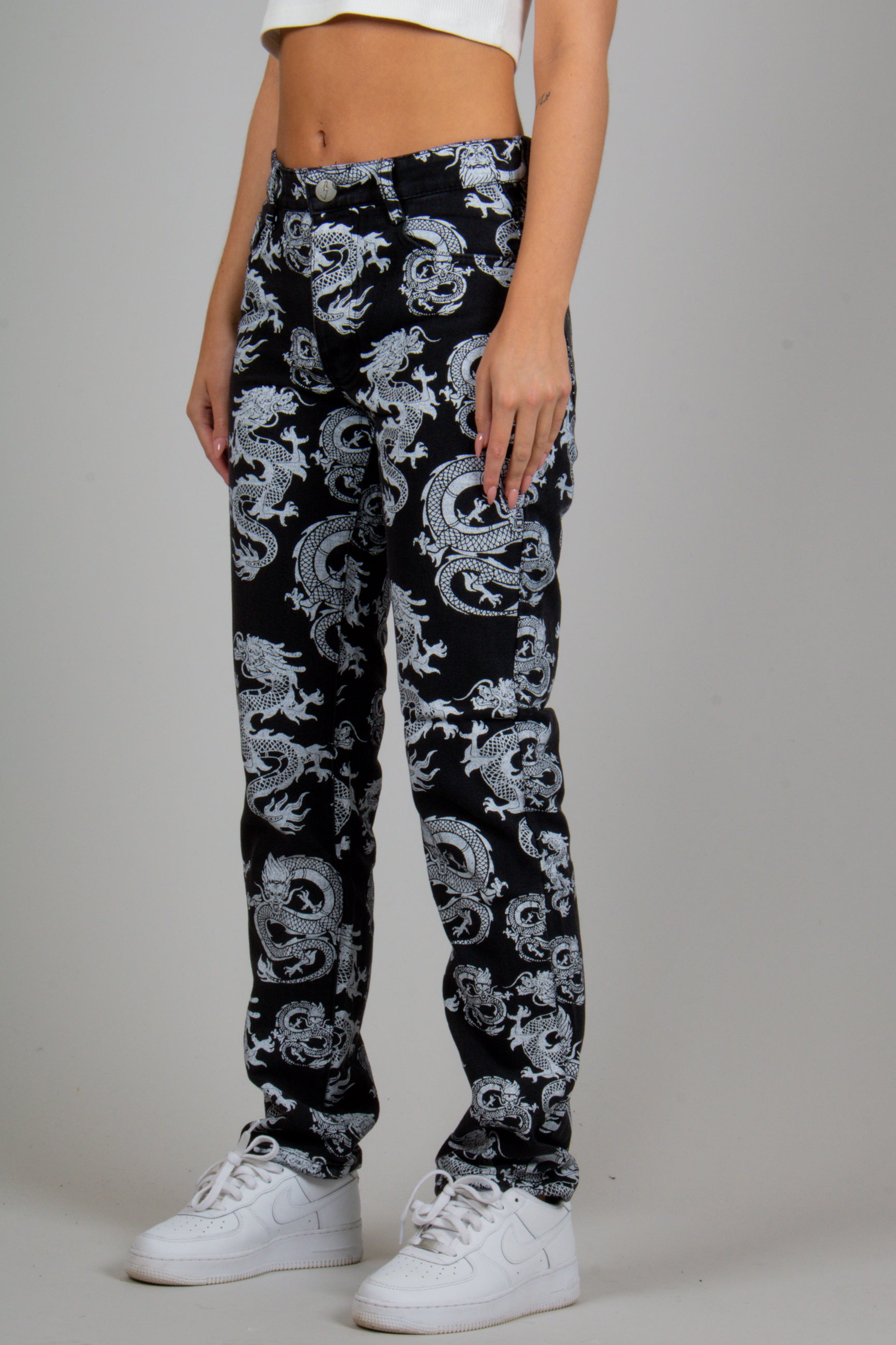 These dragon print straight leg jeans fuse standout style with timeless comfort.