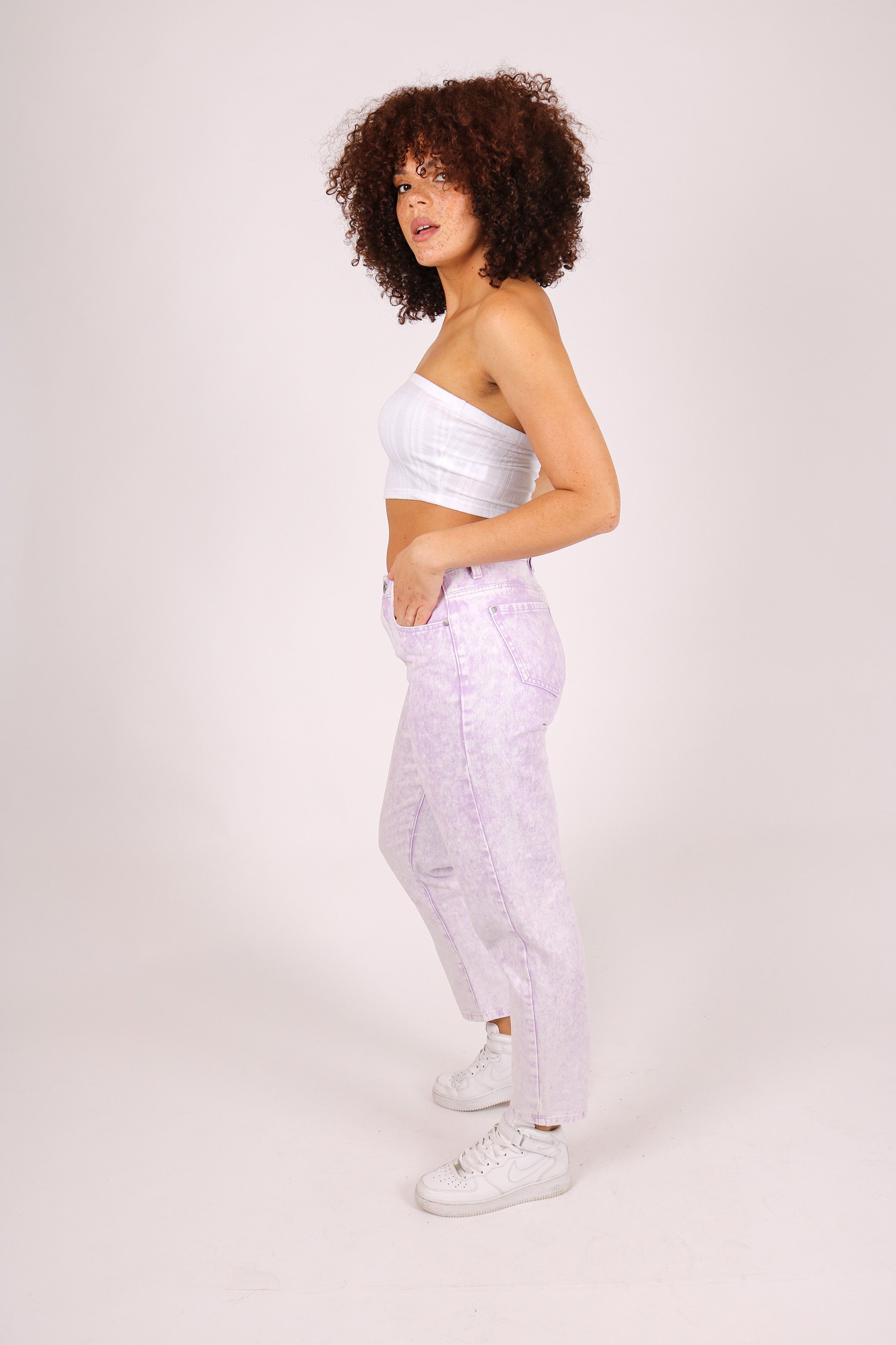Outta Limits High Rise Mom Jean In Lilac Acid Wash