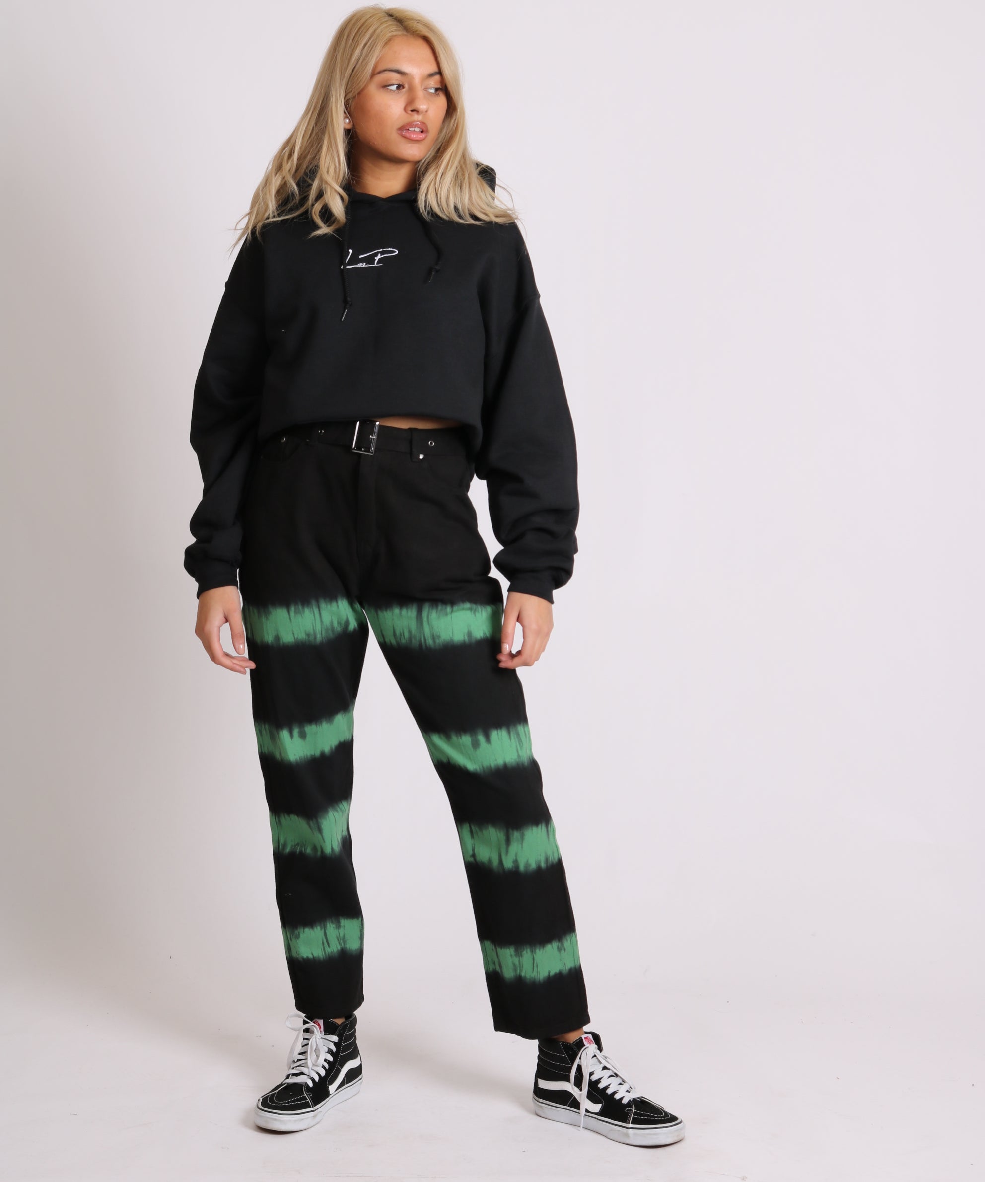 Minty Wide Leg Jeans In Black With Tie Dye Stripe