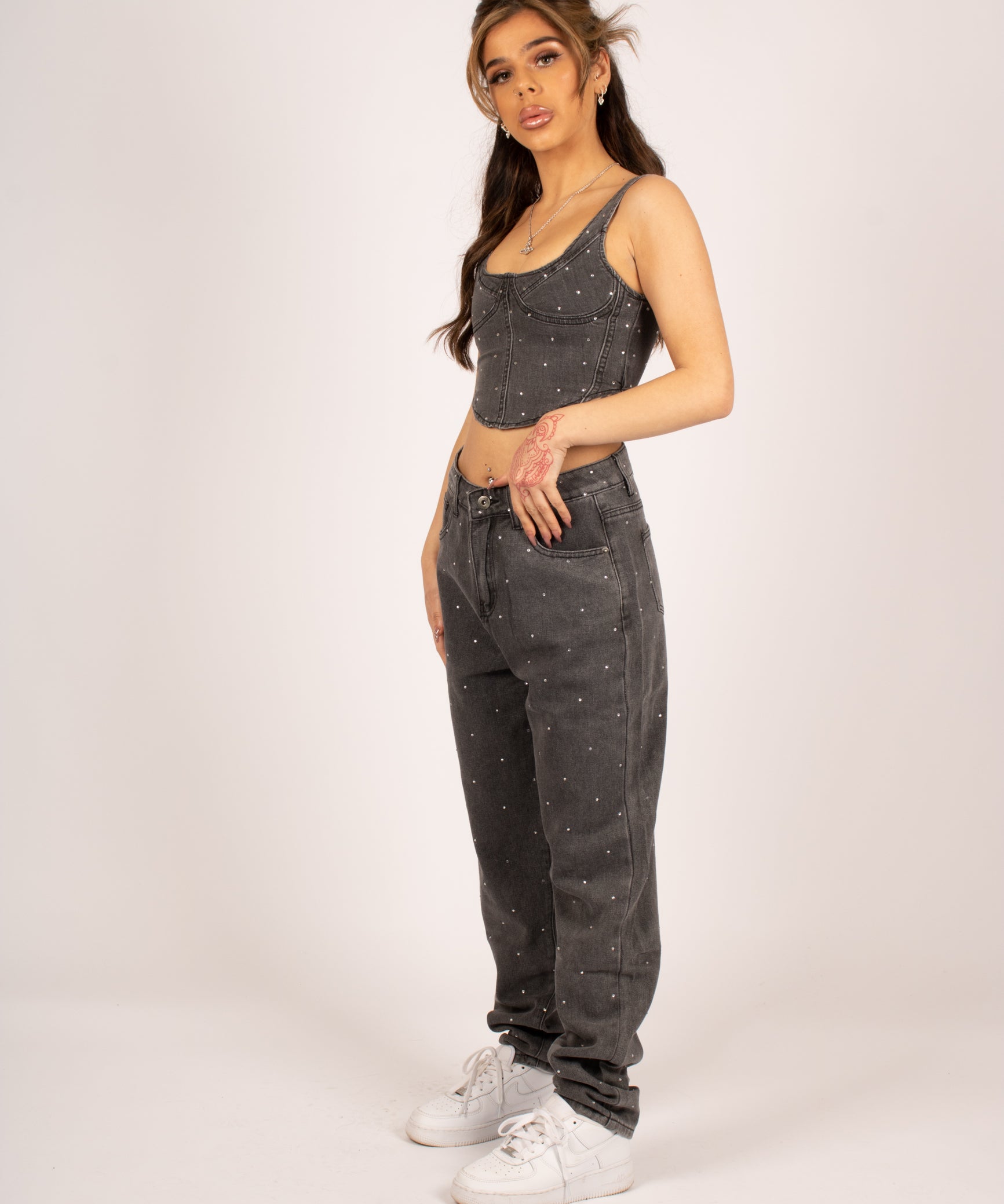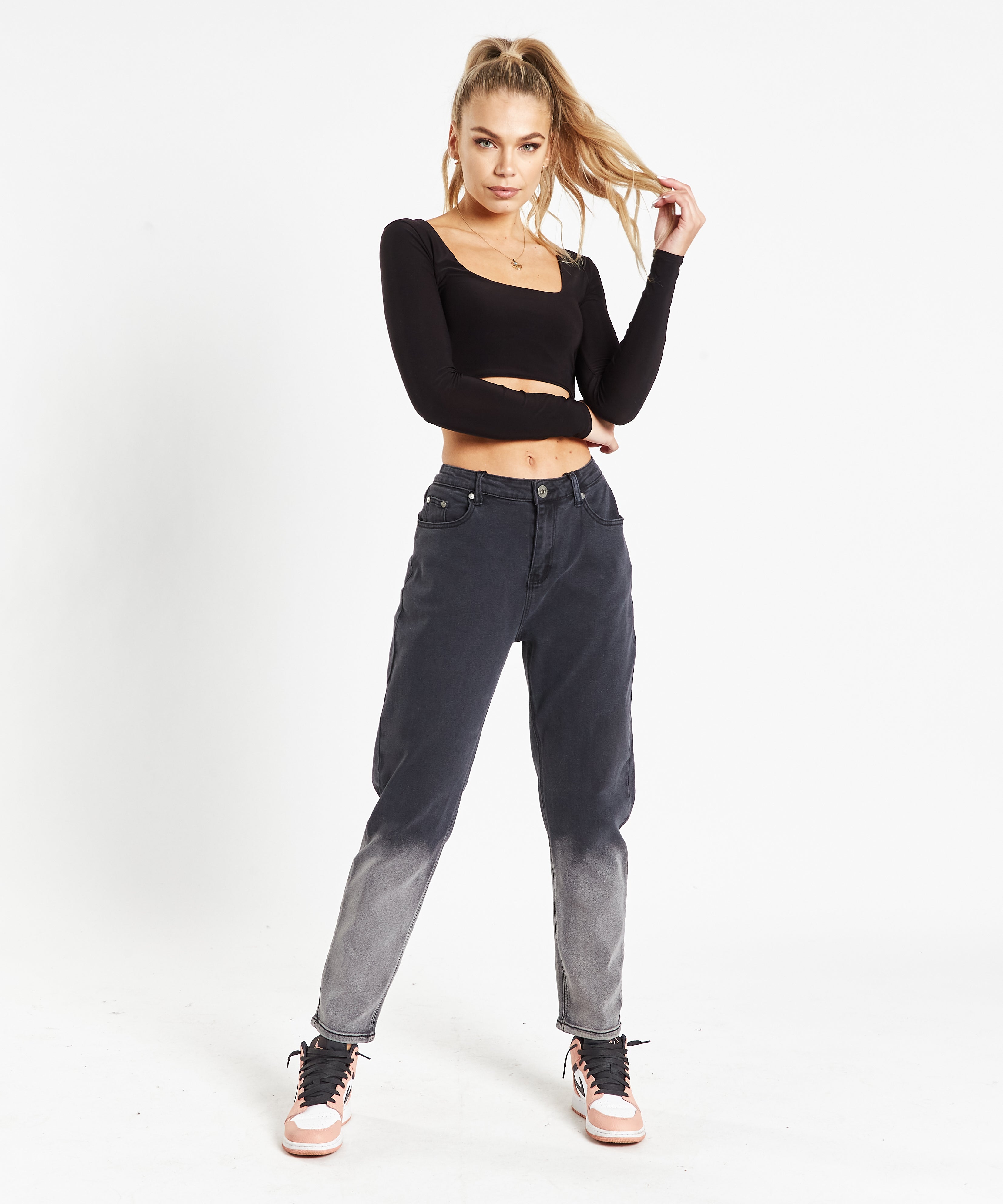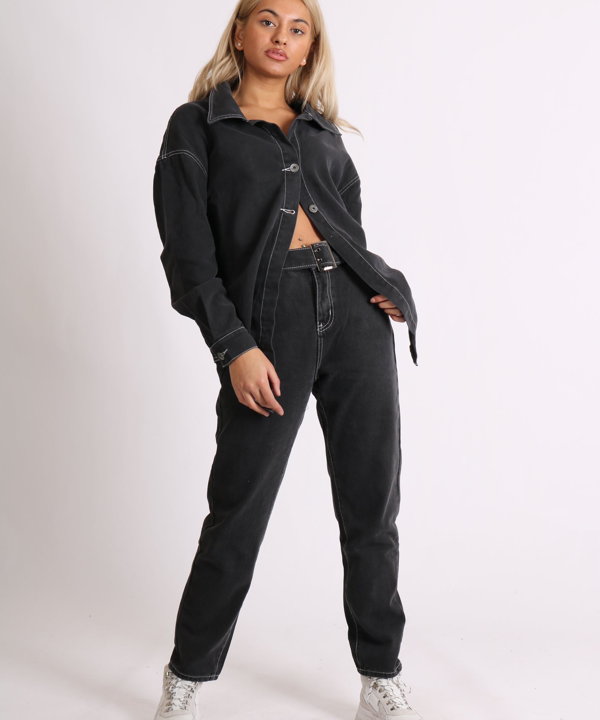 Mom Jeans In Washed Black Co-Ord