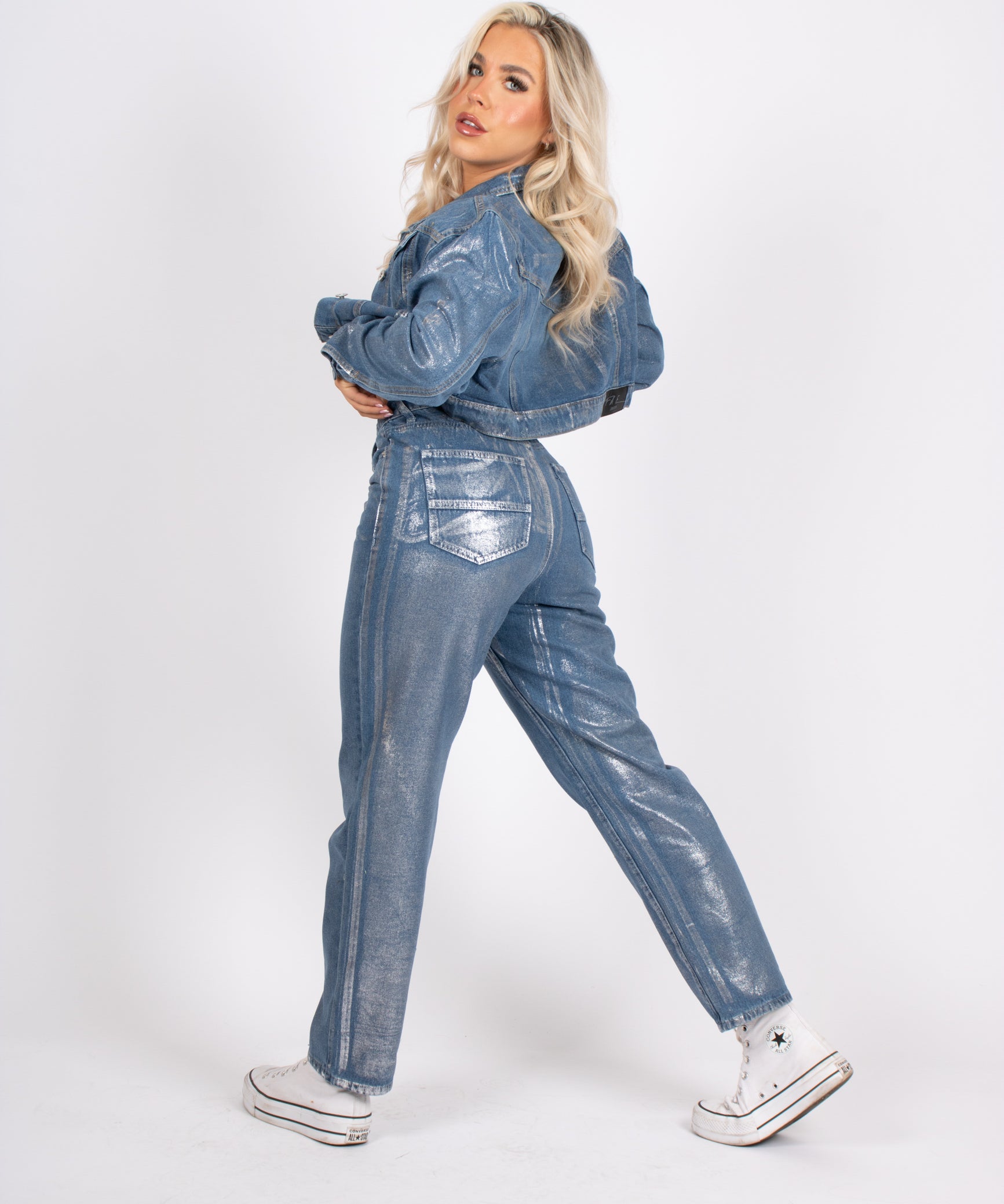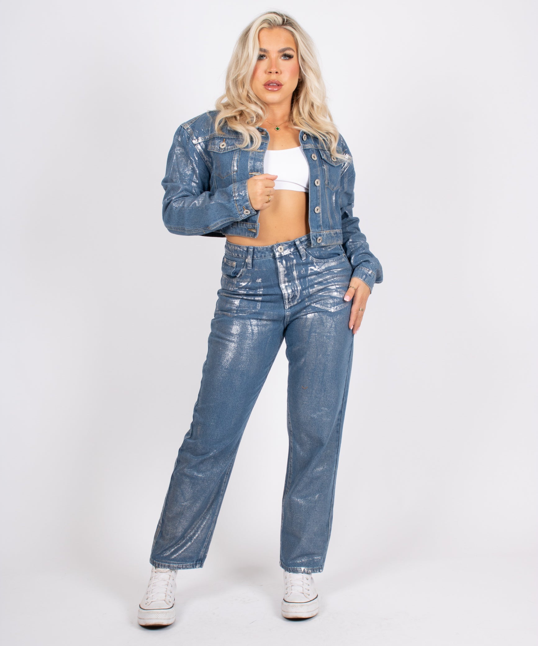 Fae Silver Metallic Straight Leg Jeans