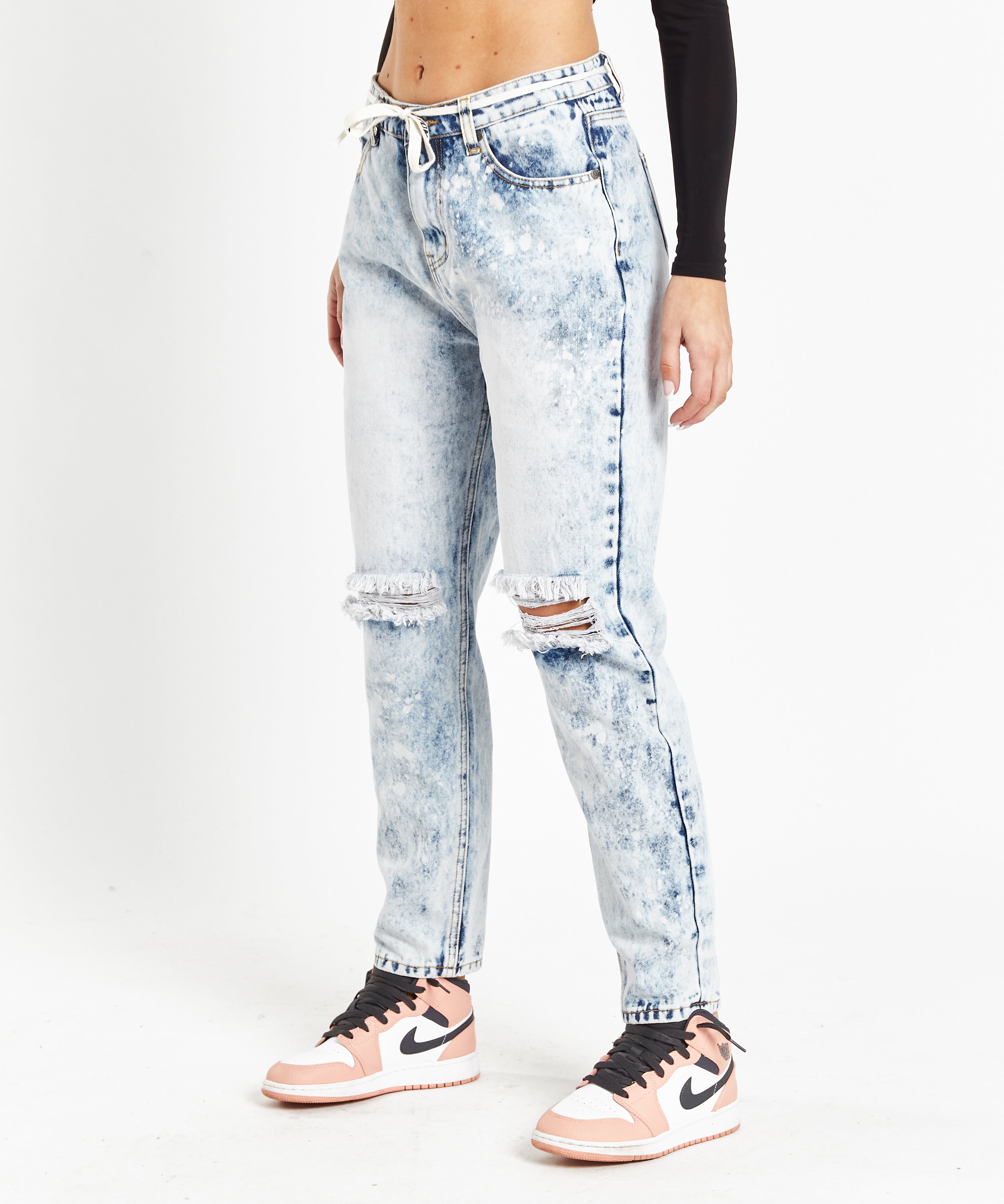 Ice-Wash Ripped Knee Mom Jeans