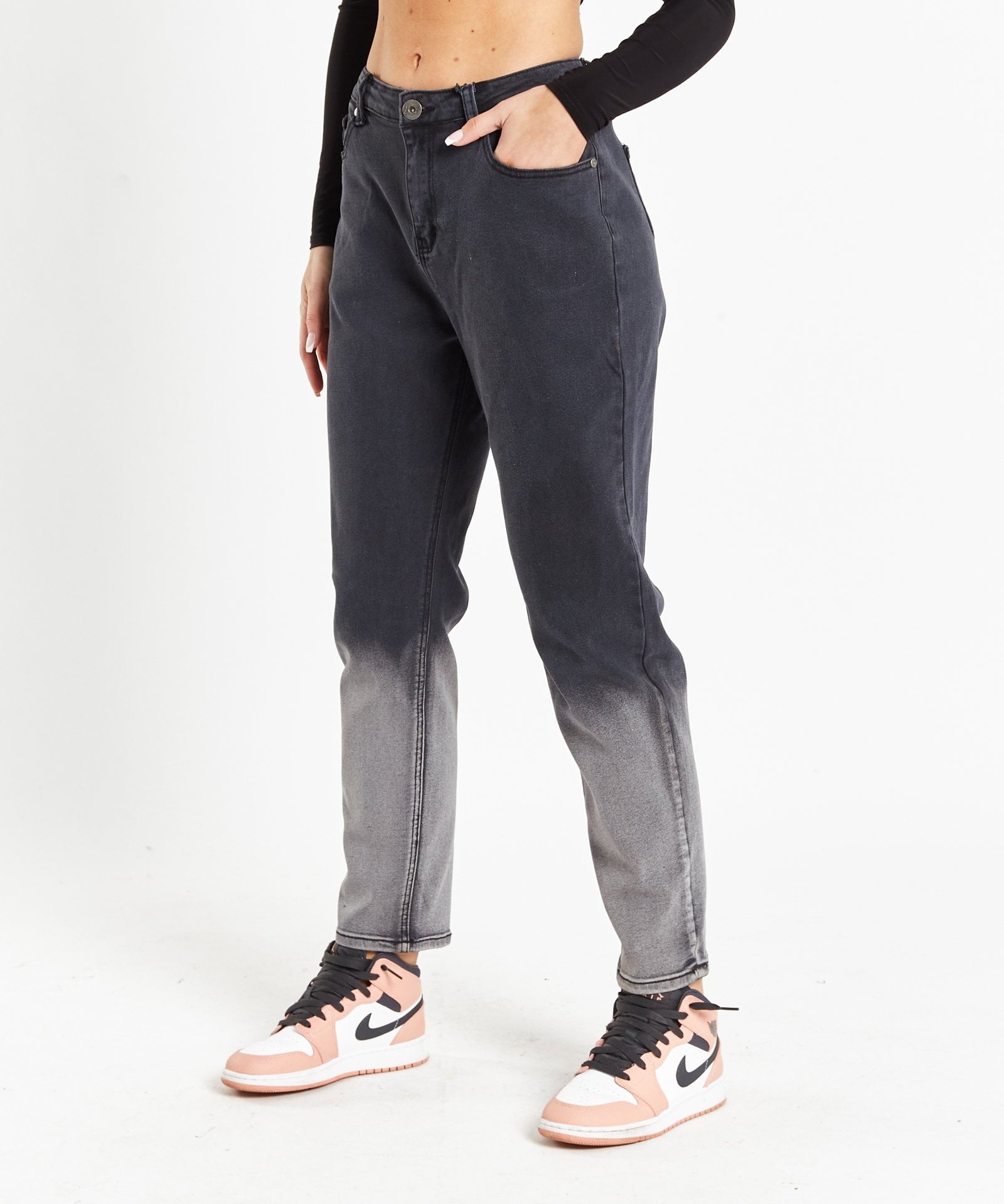 Midori Black Stepped Waist Boyfriend Jeans
