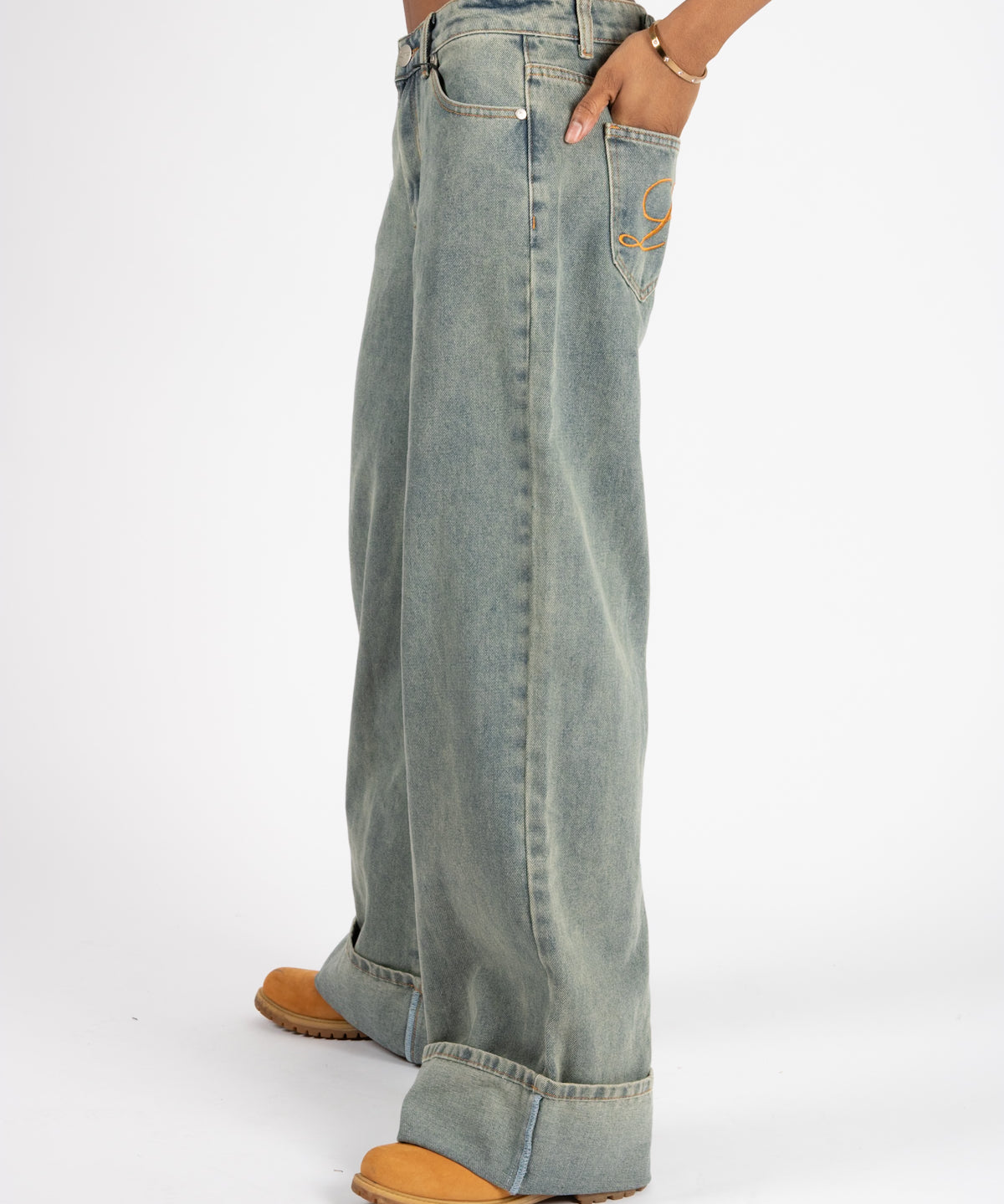 Dirty Wash Mid Rise Baggy Jeans
