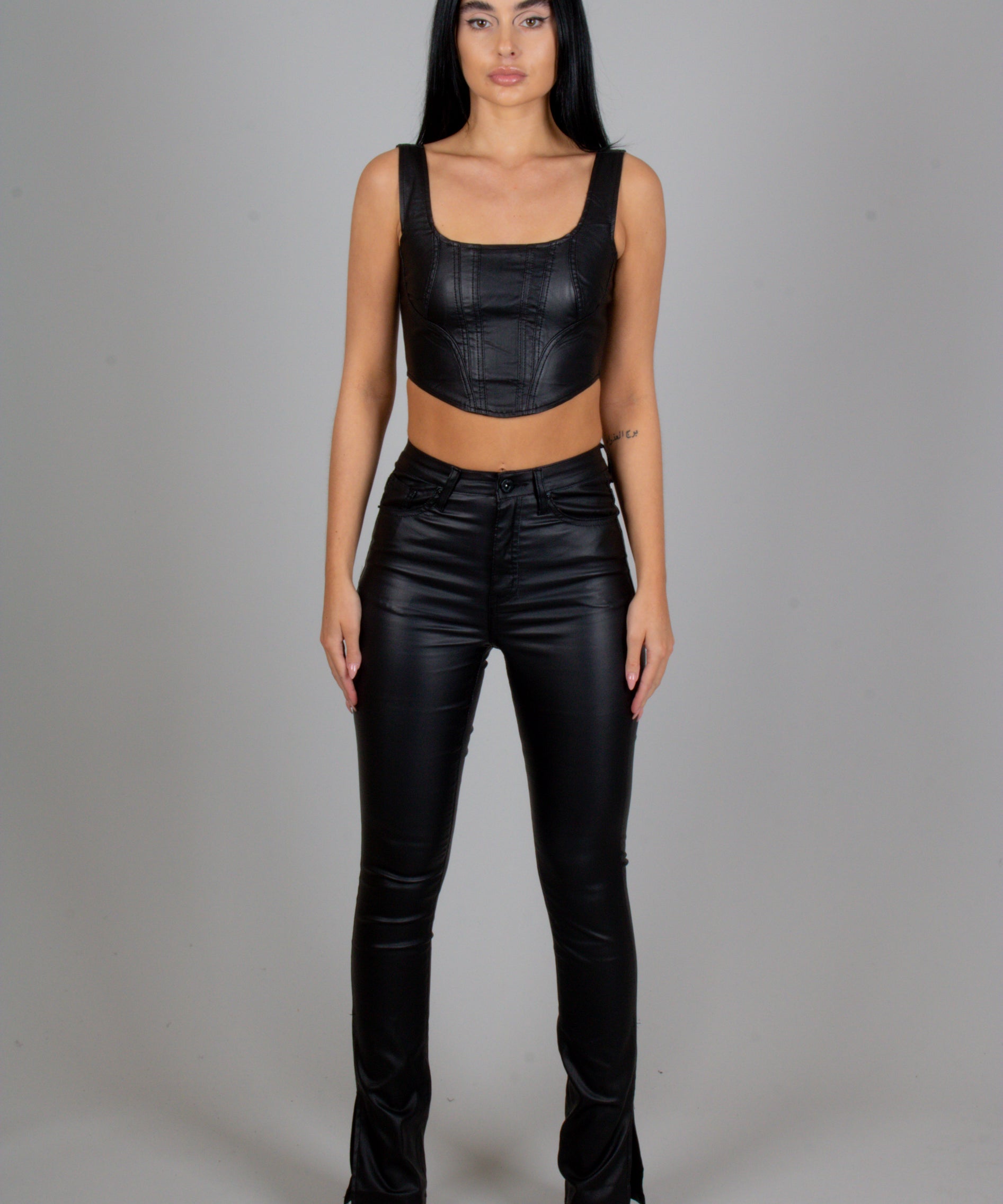 Black Contrast Stitch & Buckle Straight Leg Jeans