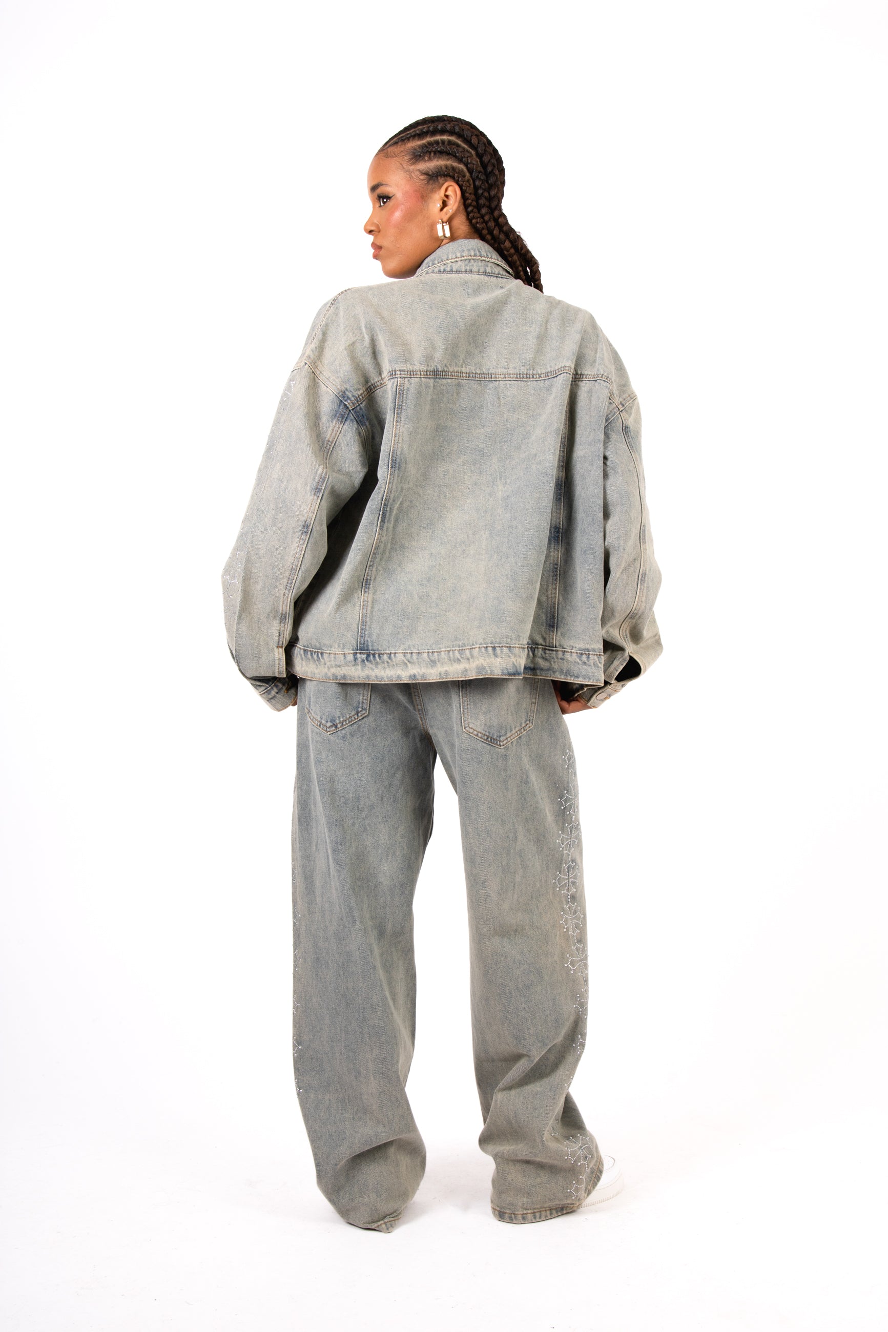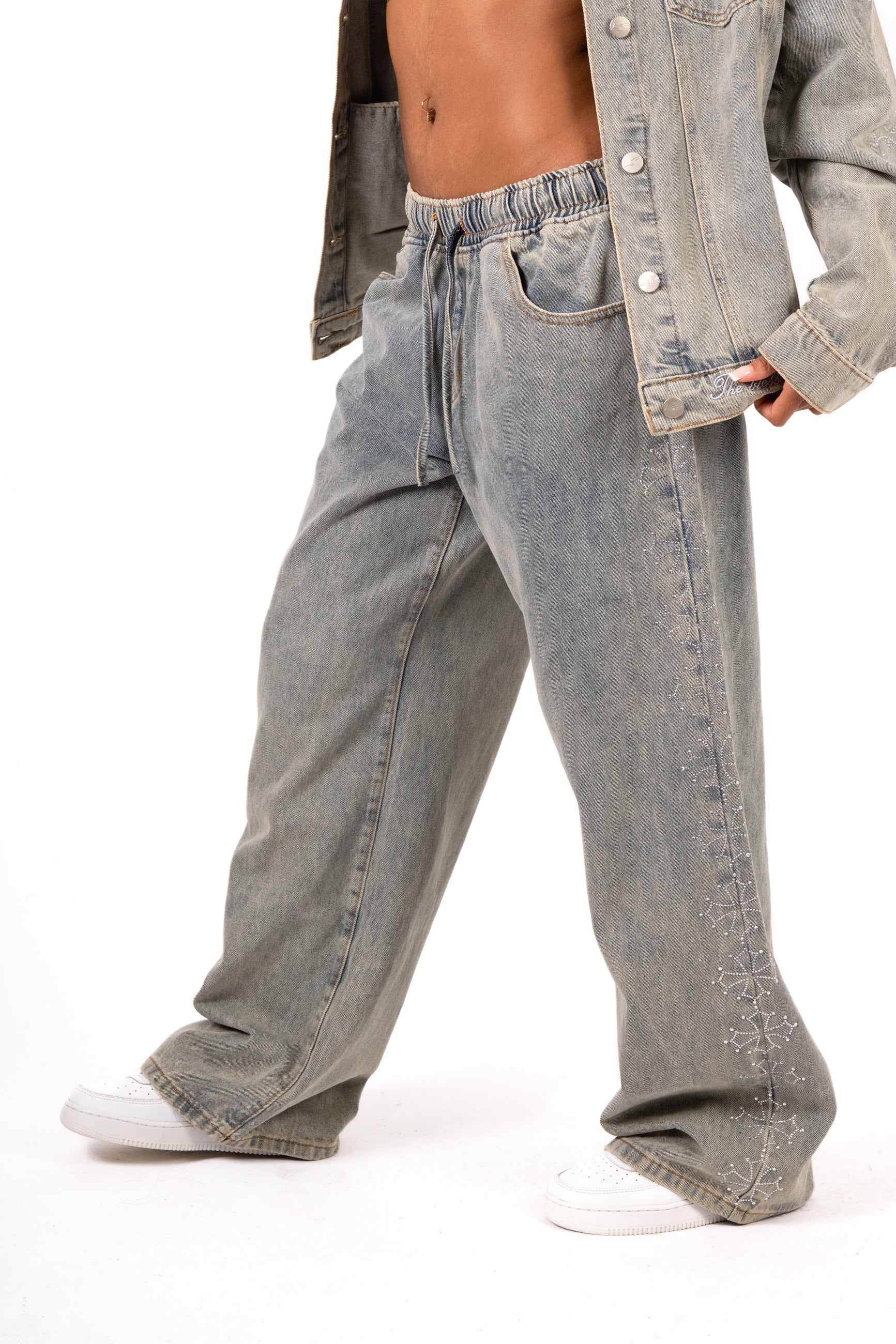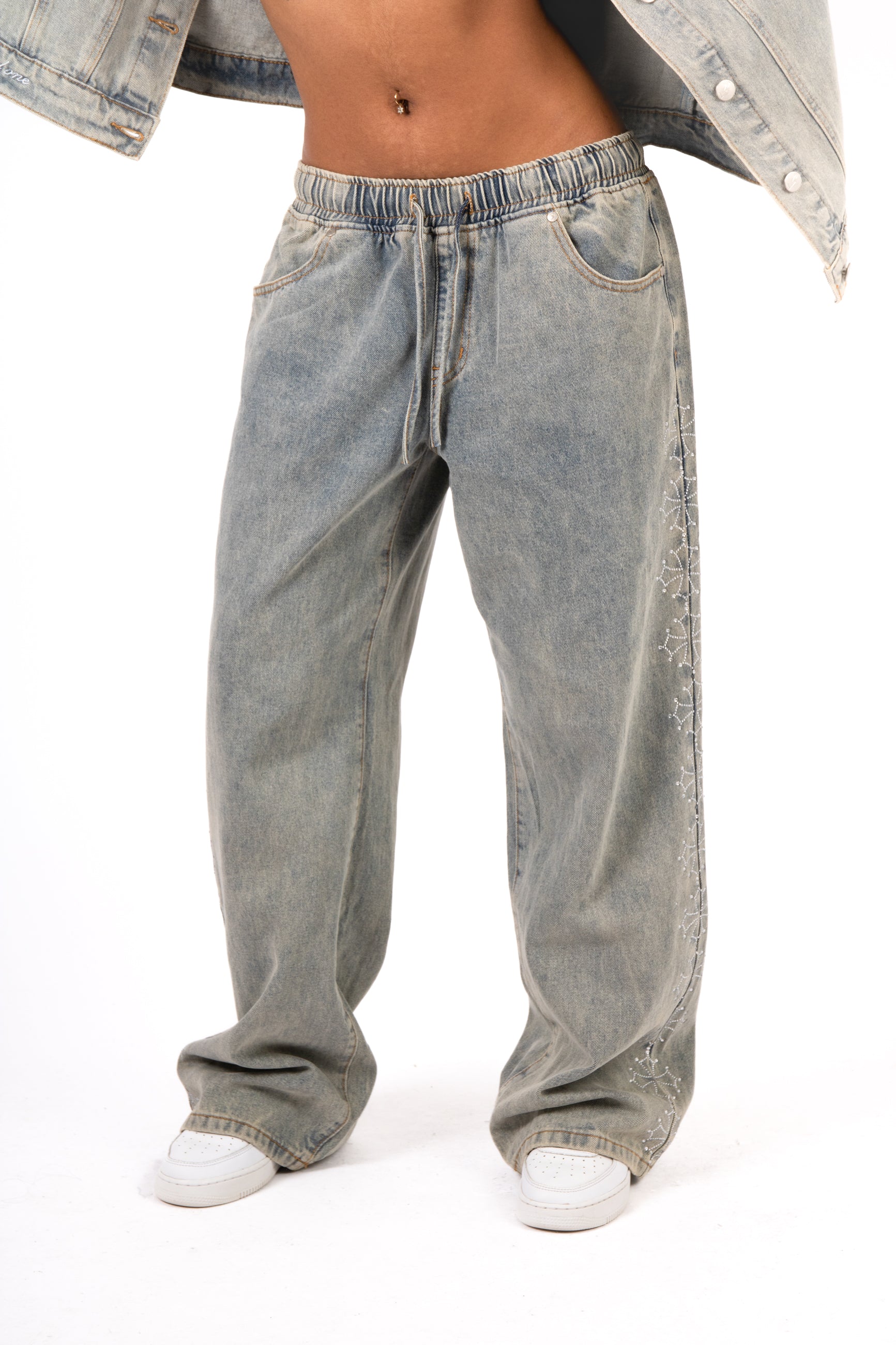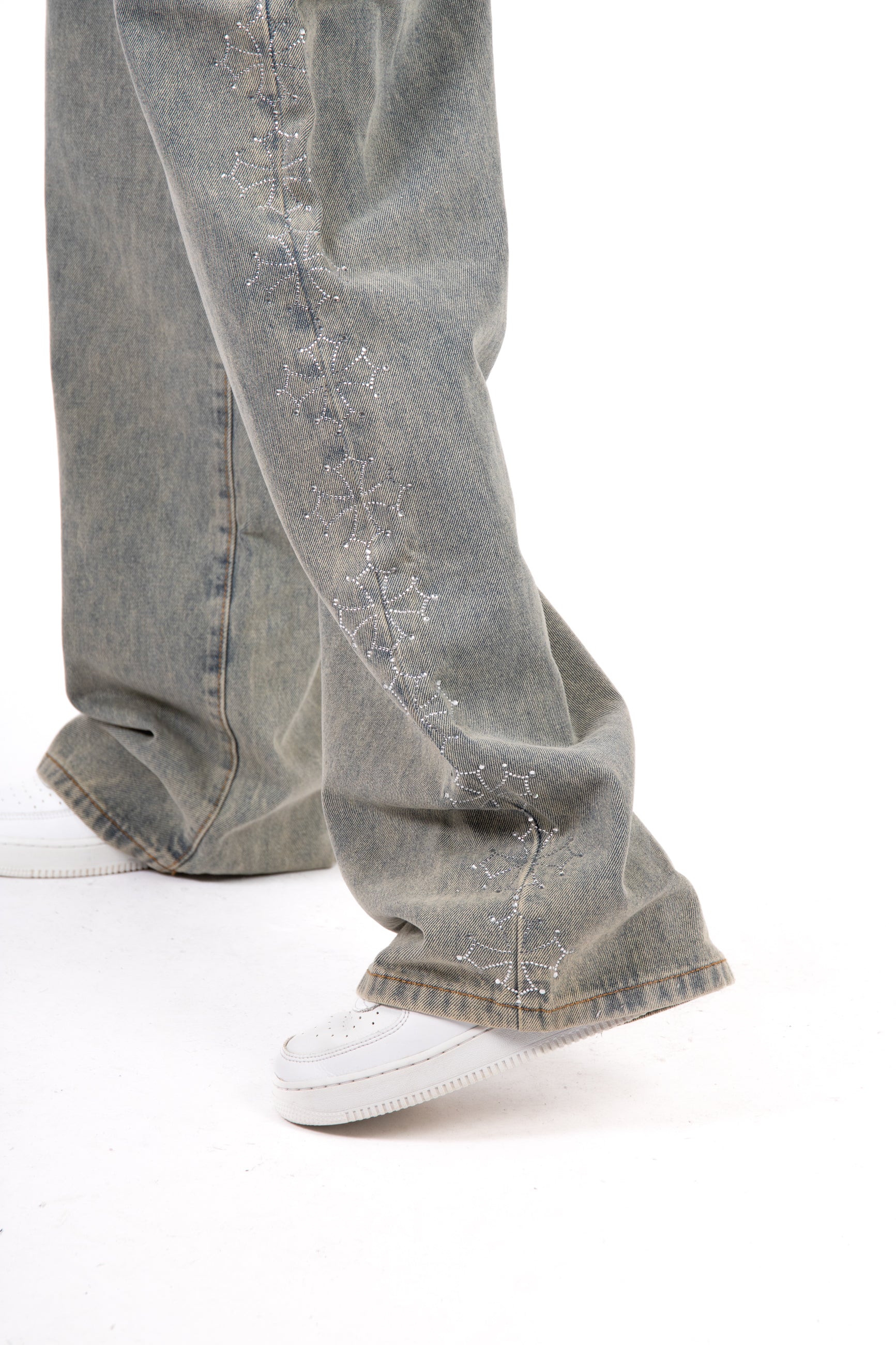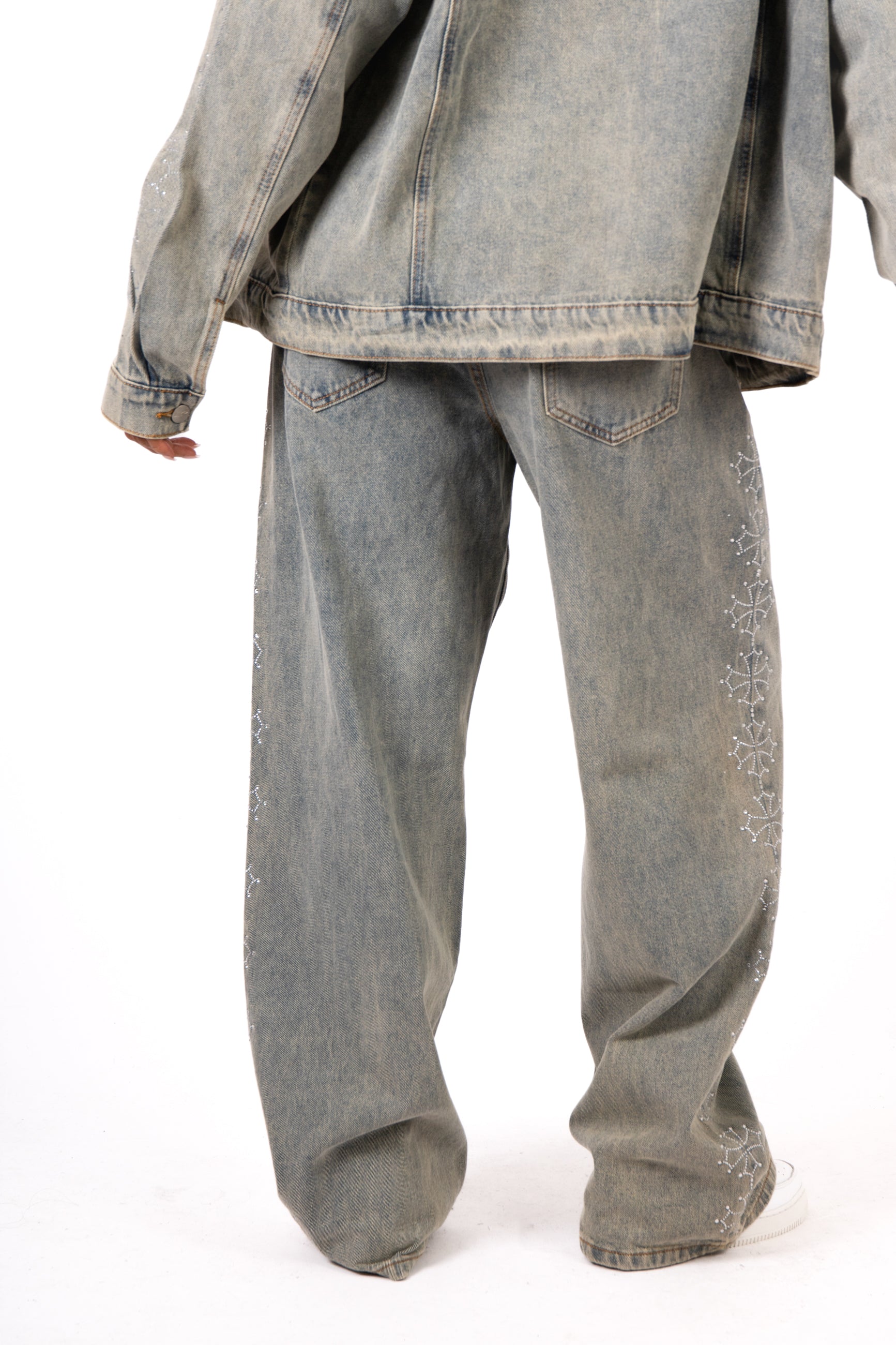 Rhinestone Embellished Denim Baggy Fit Boyfriend Jeans