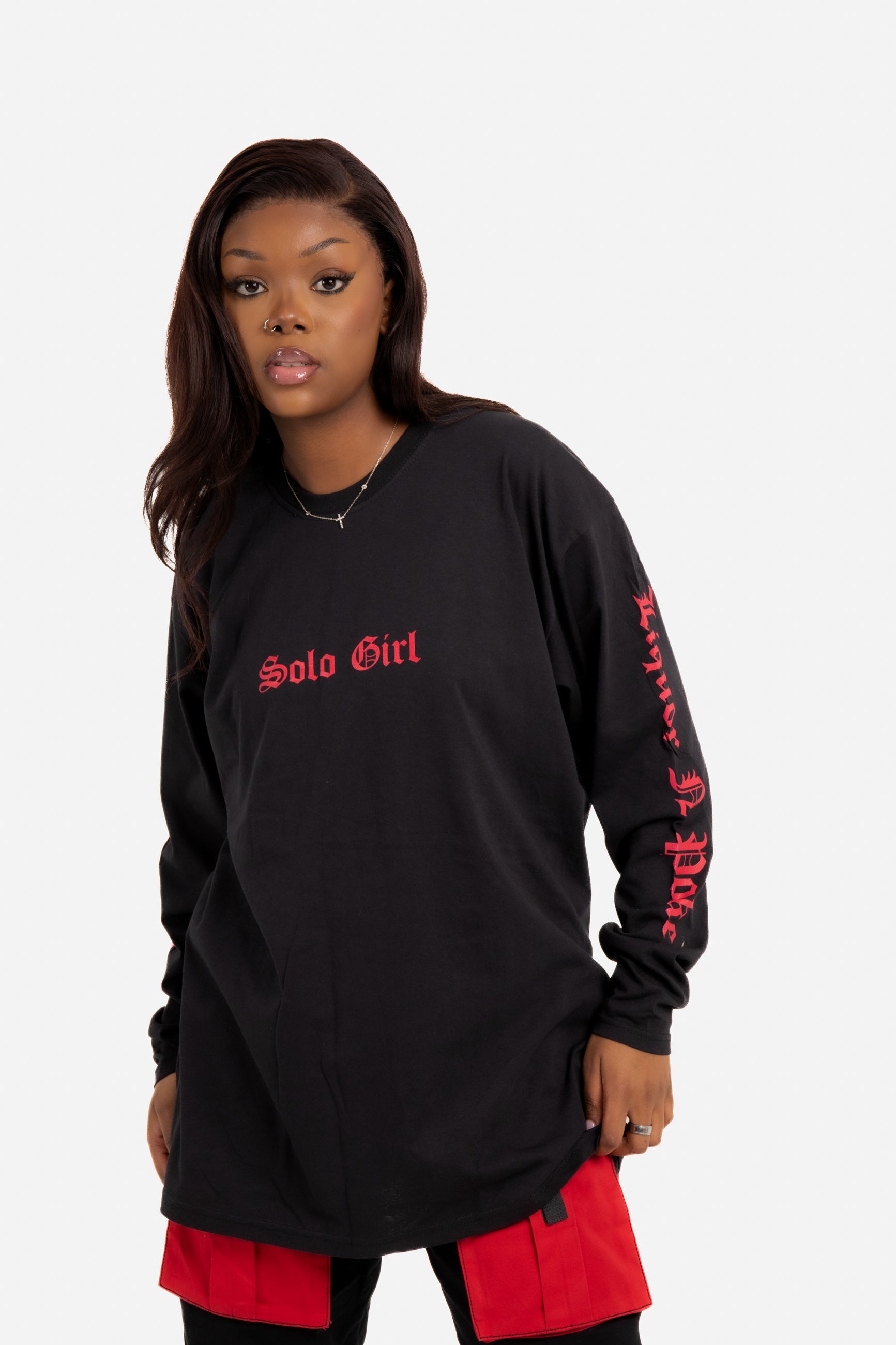 Solo Girl Long Sleeve T Shirt With Safari Print In Black