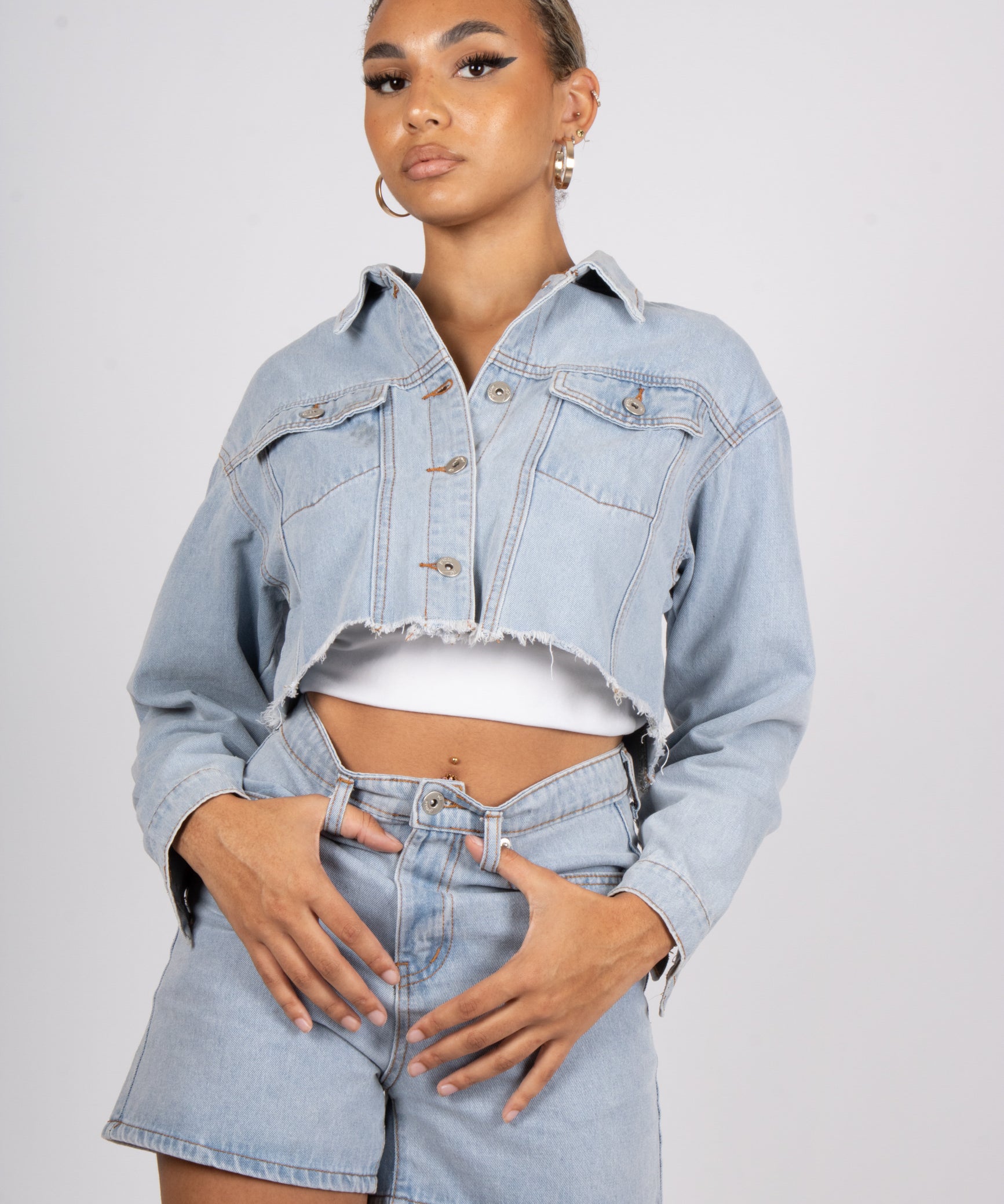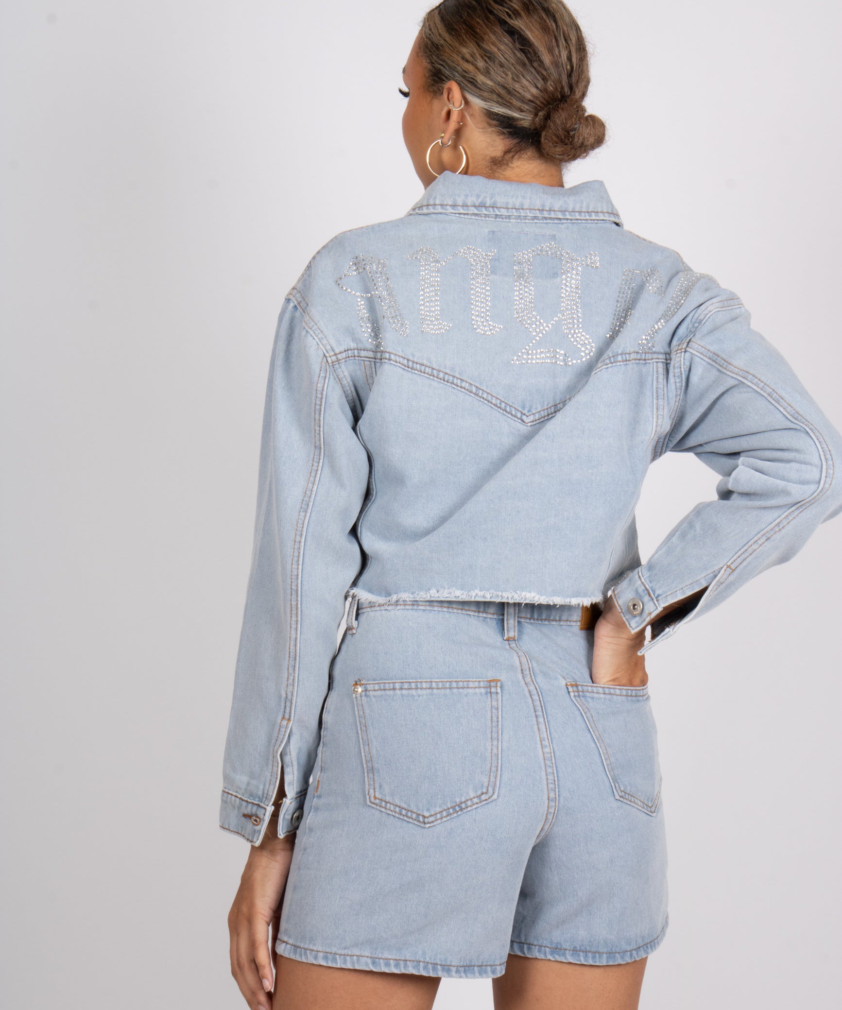 Fae Diamanté Angel Cropped Denim Jacket
