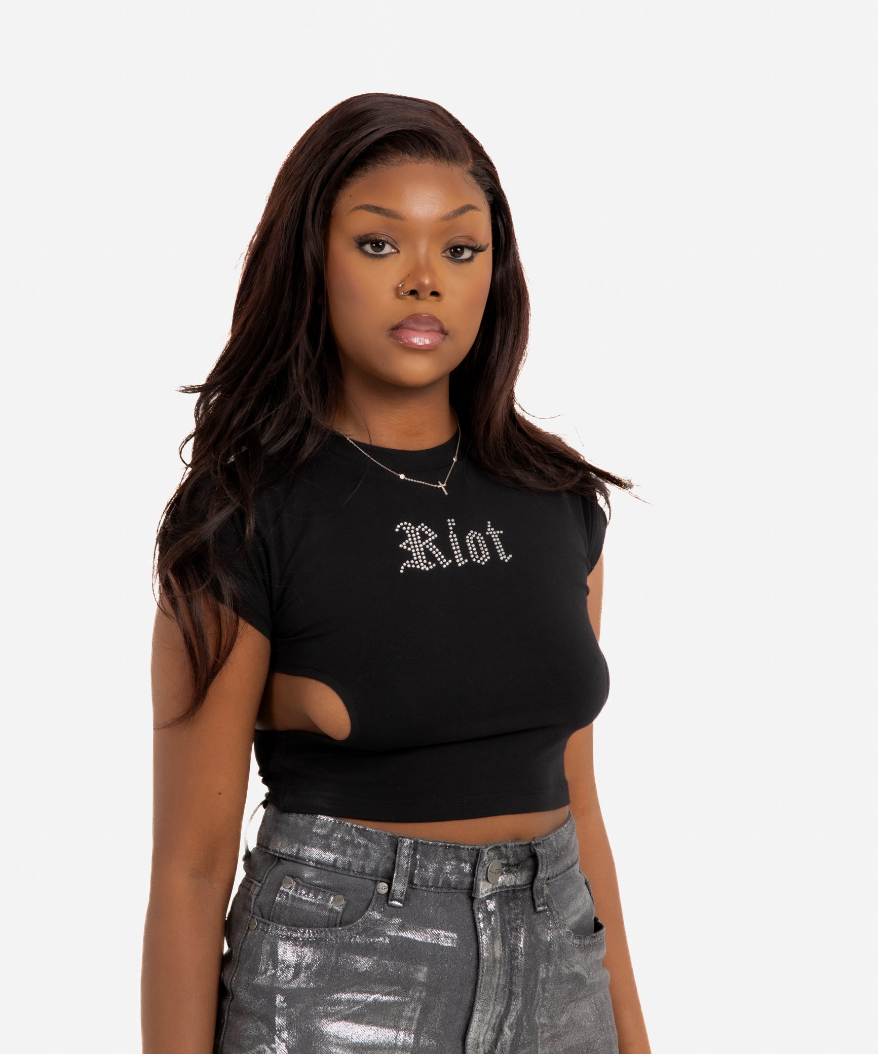 Diamanté Riot Side Boob Cut-Out Crop Top
