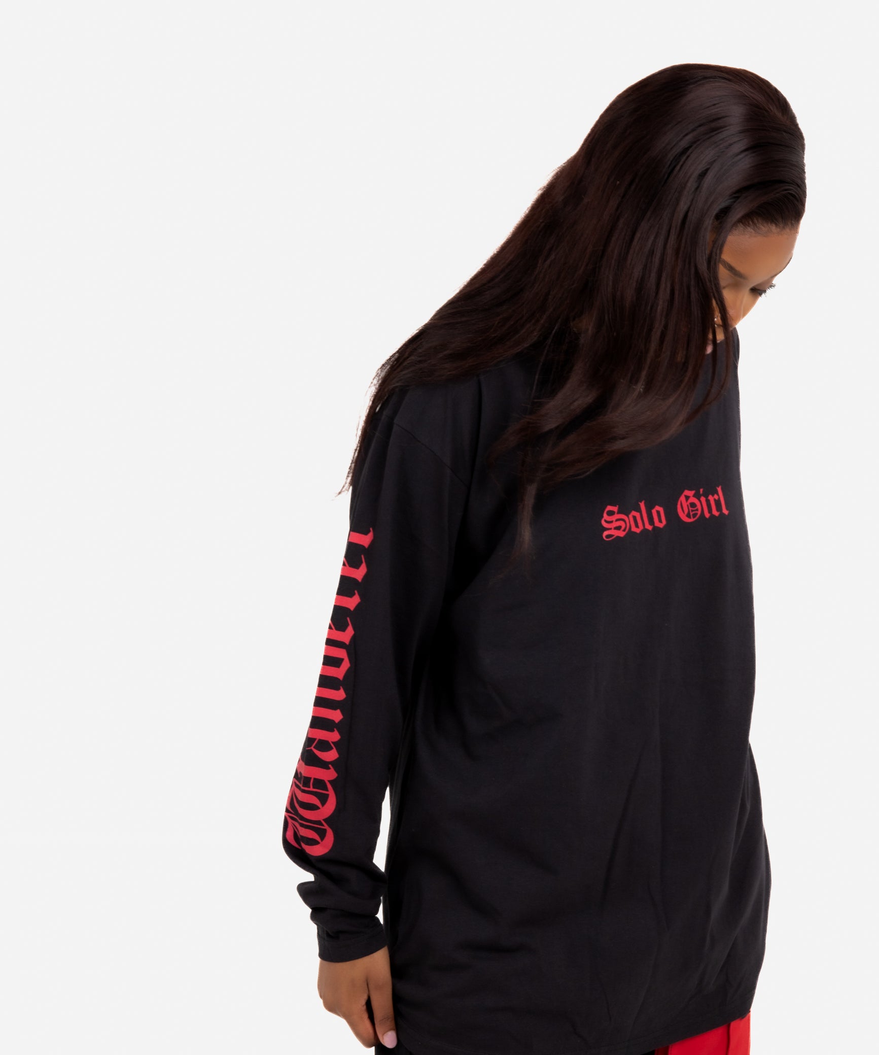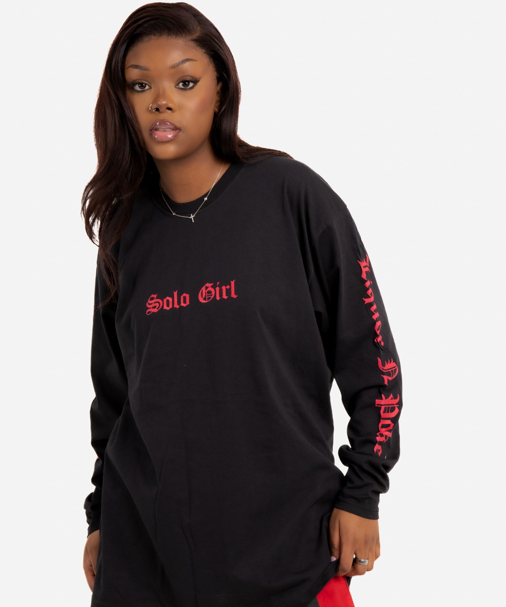 Solo Girl Long Sleeve T Shirt With Safari Print In Black