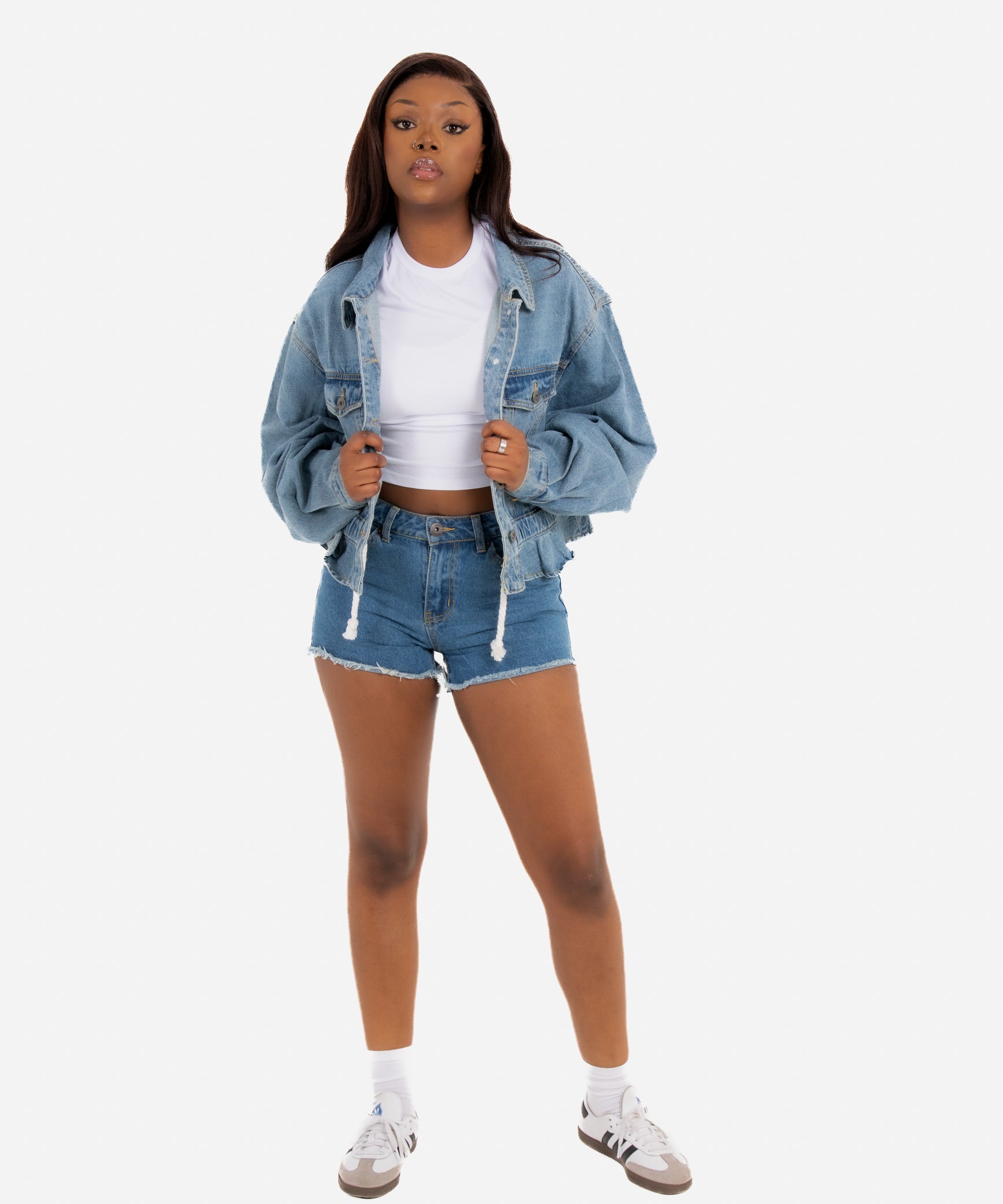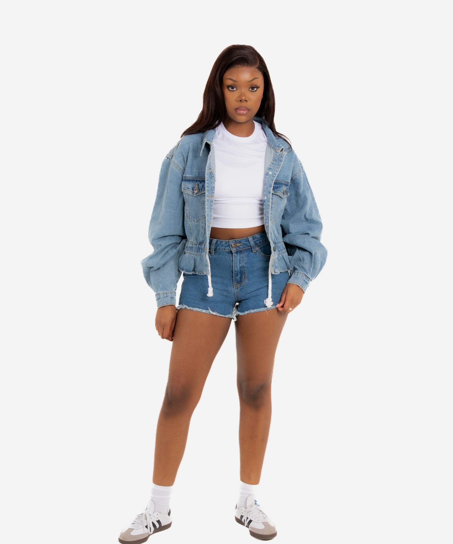 Dakota Oversized But Cropped Denim Jacket With Rope Pull Detail