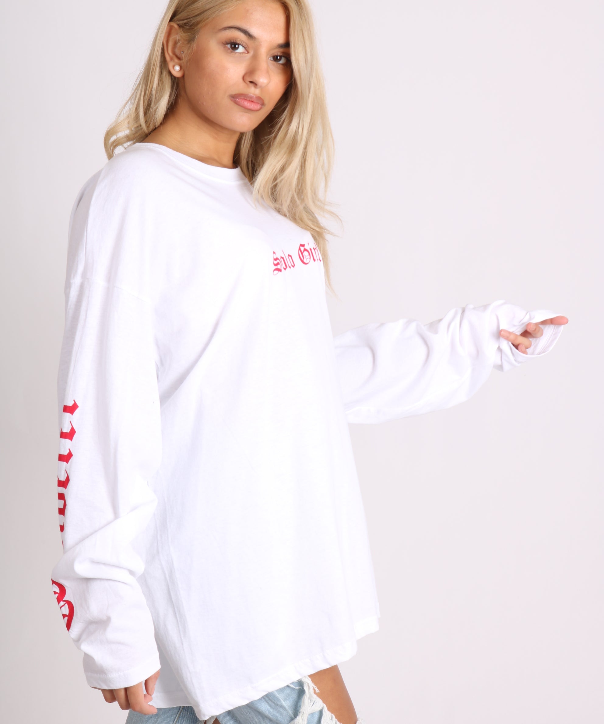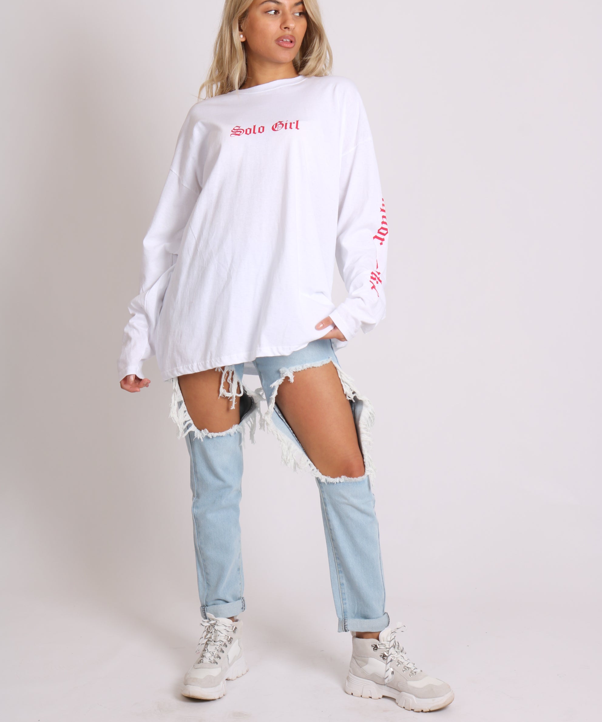 Solo Girl Long Sleeve T-Shirt With Safari Print In White