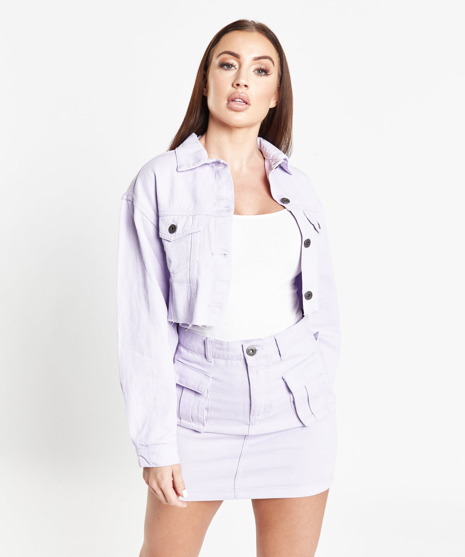 Outta Limits Oversized Utility Denim Jacket In Lilac Acid Wash
