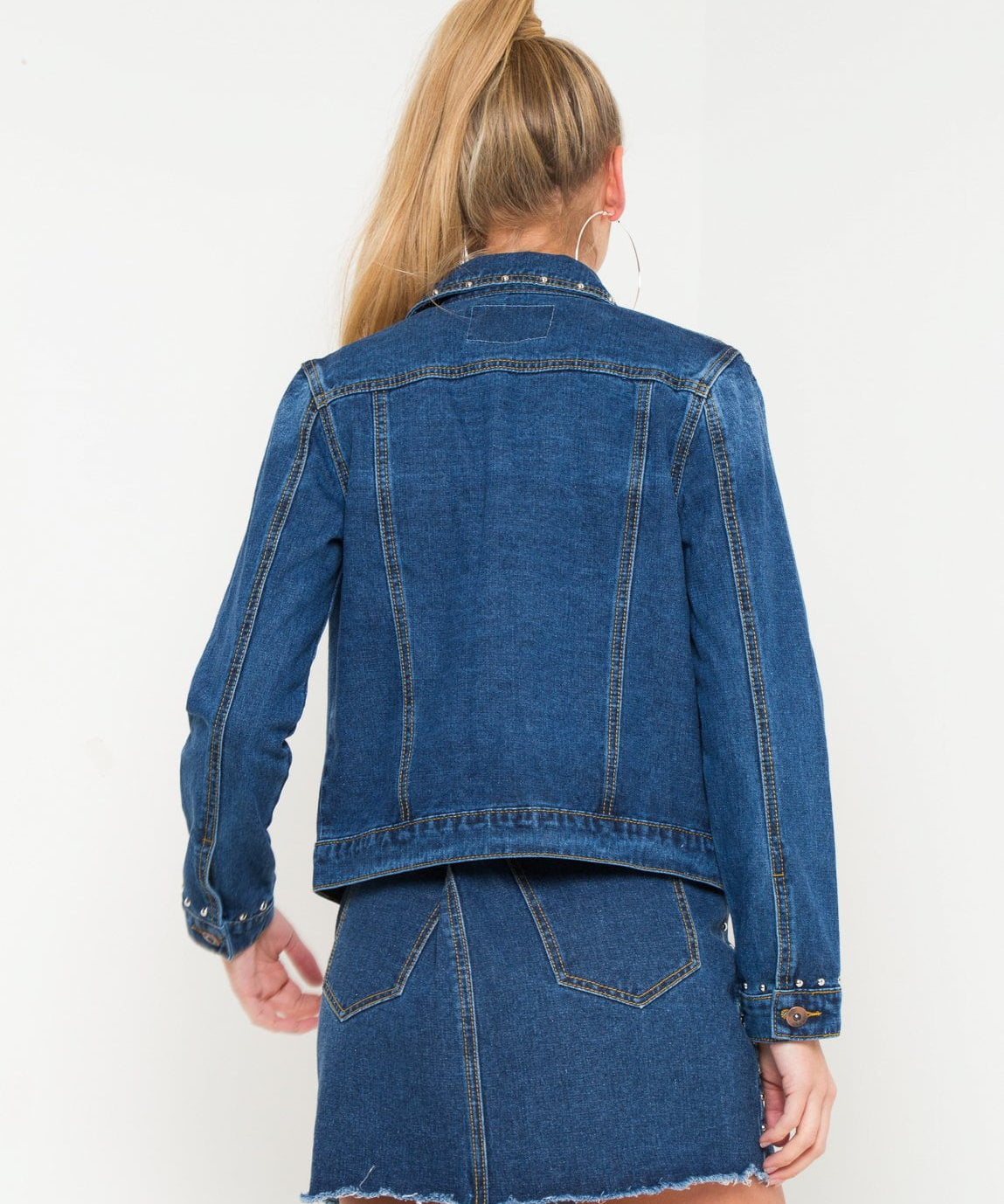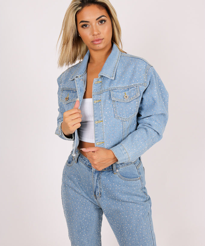 Gemstone Denim Jumpsuit With Kickflare And Gemstones