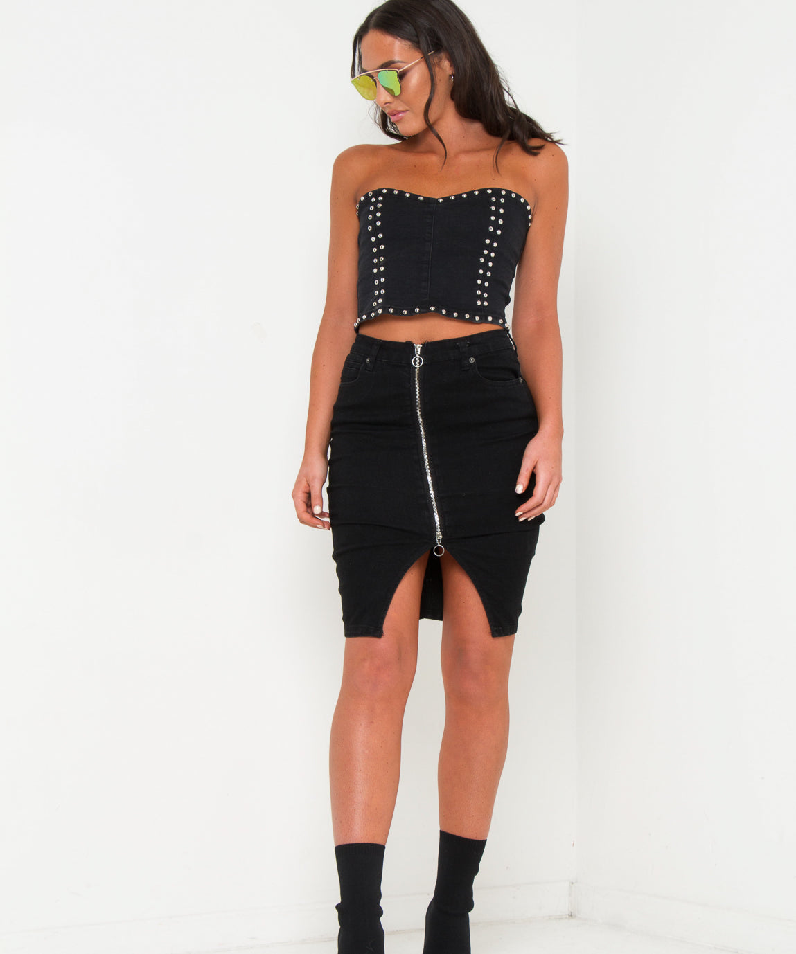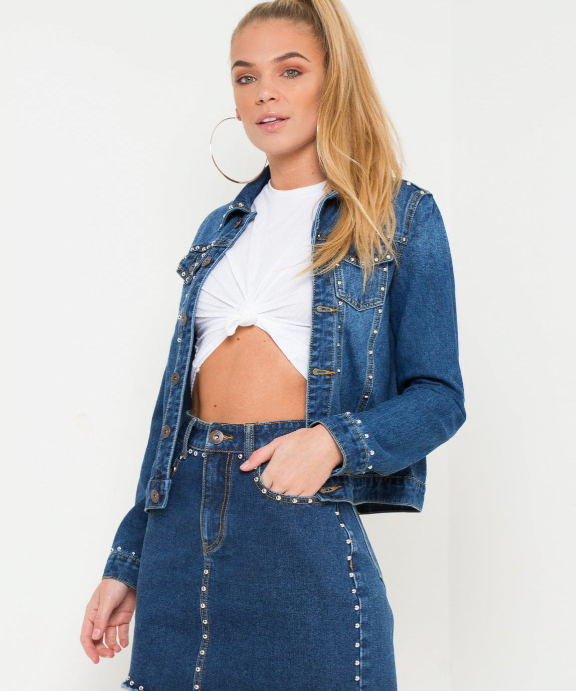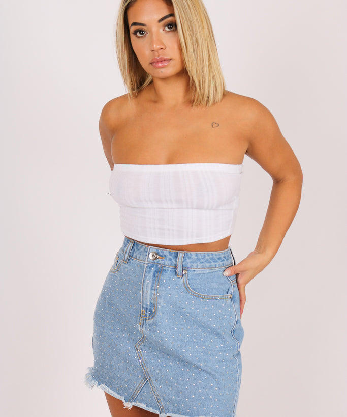 Anais Glitzy Glam Denim Mini Skirt In Vintage Stonewash
