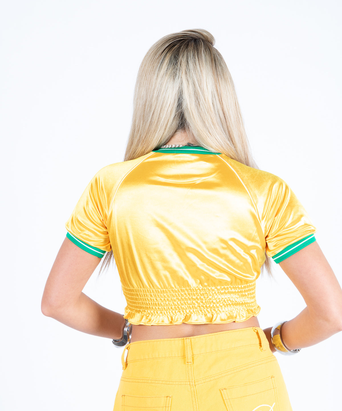 Yellow Ruched Varsity Cropped Tee