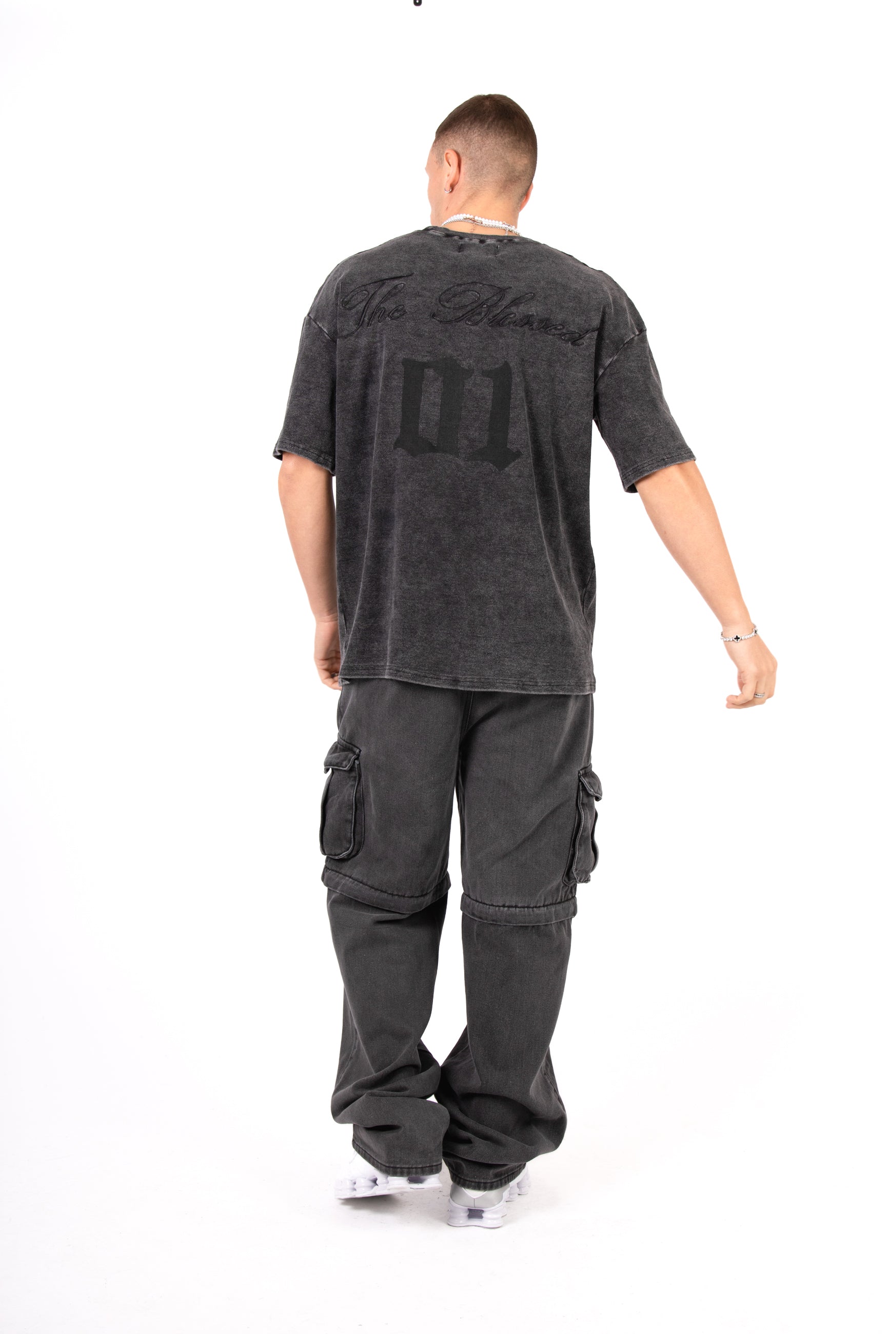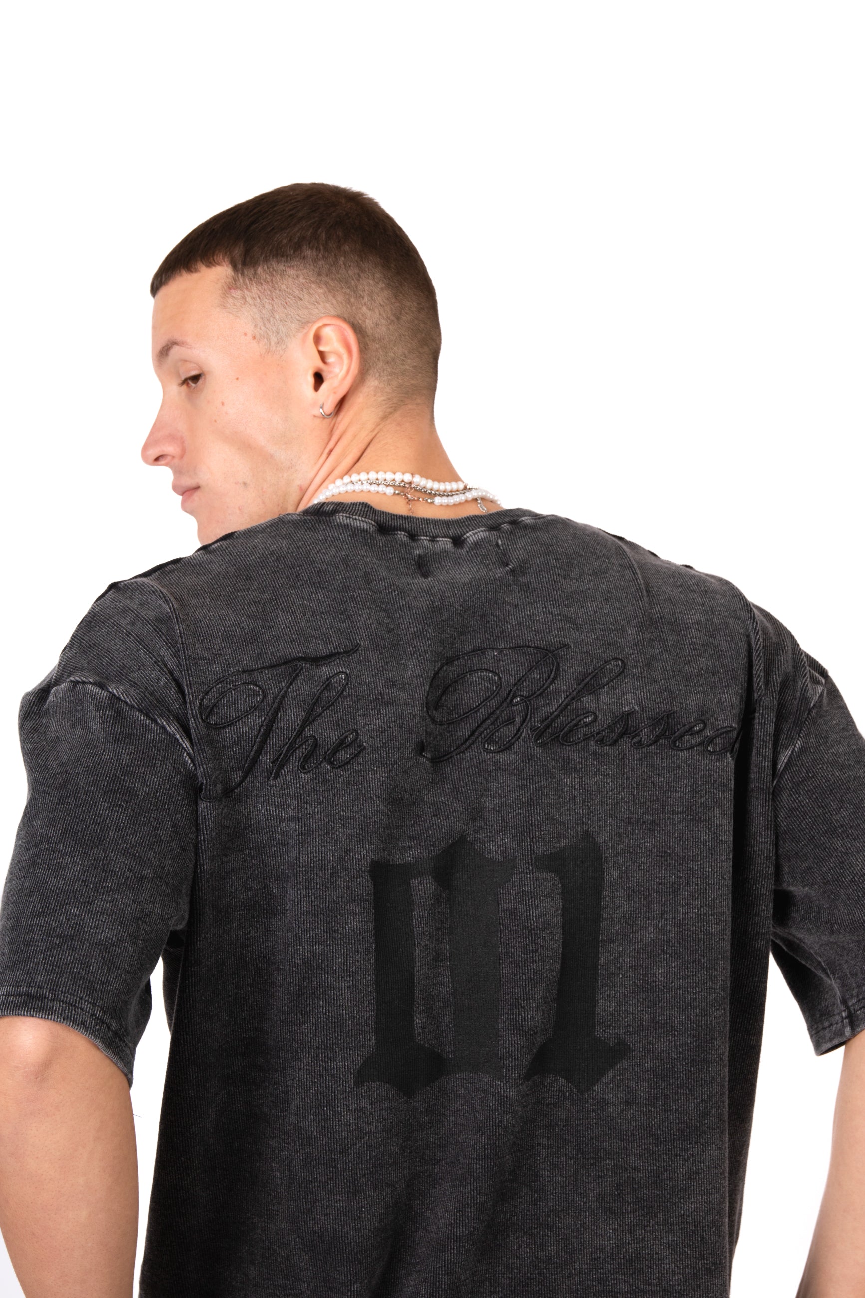 Acid Black Ribbed 'The Blessed 01' Varsity T-Shirt