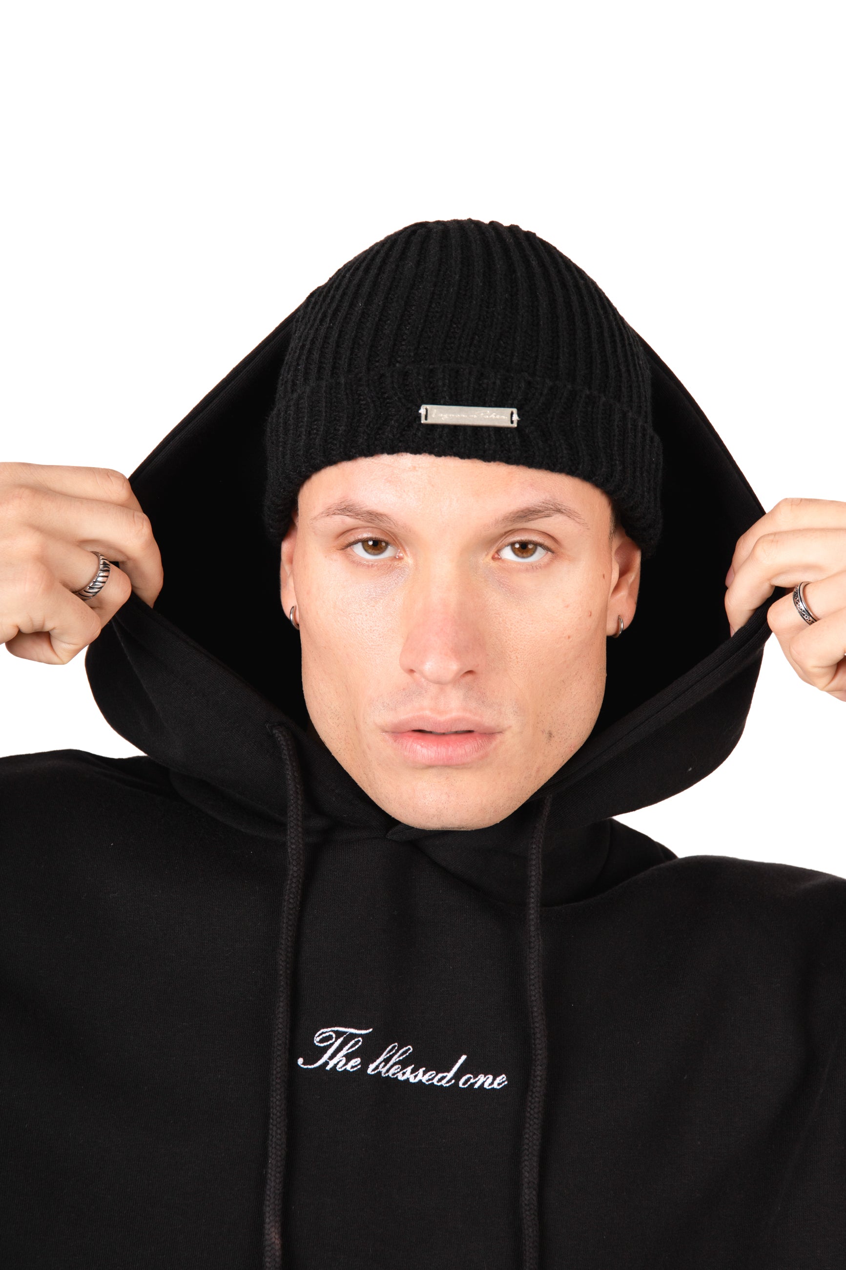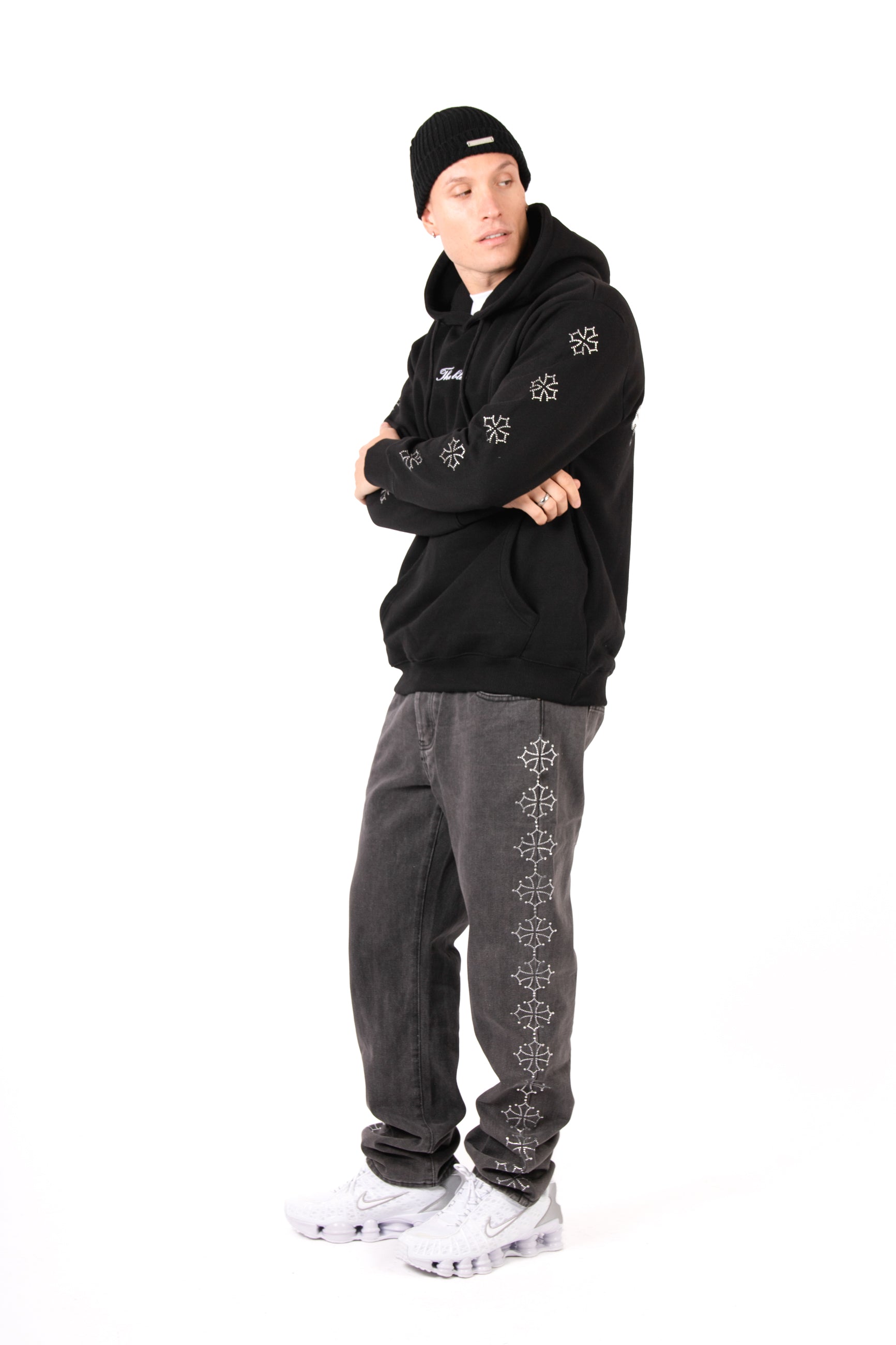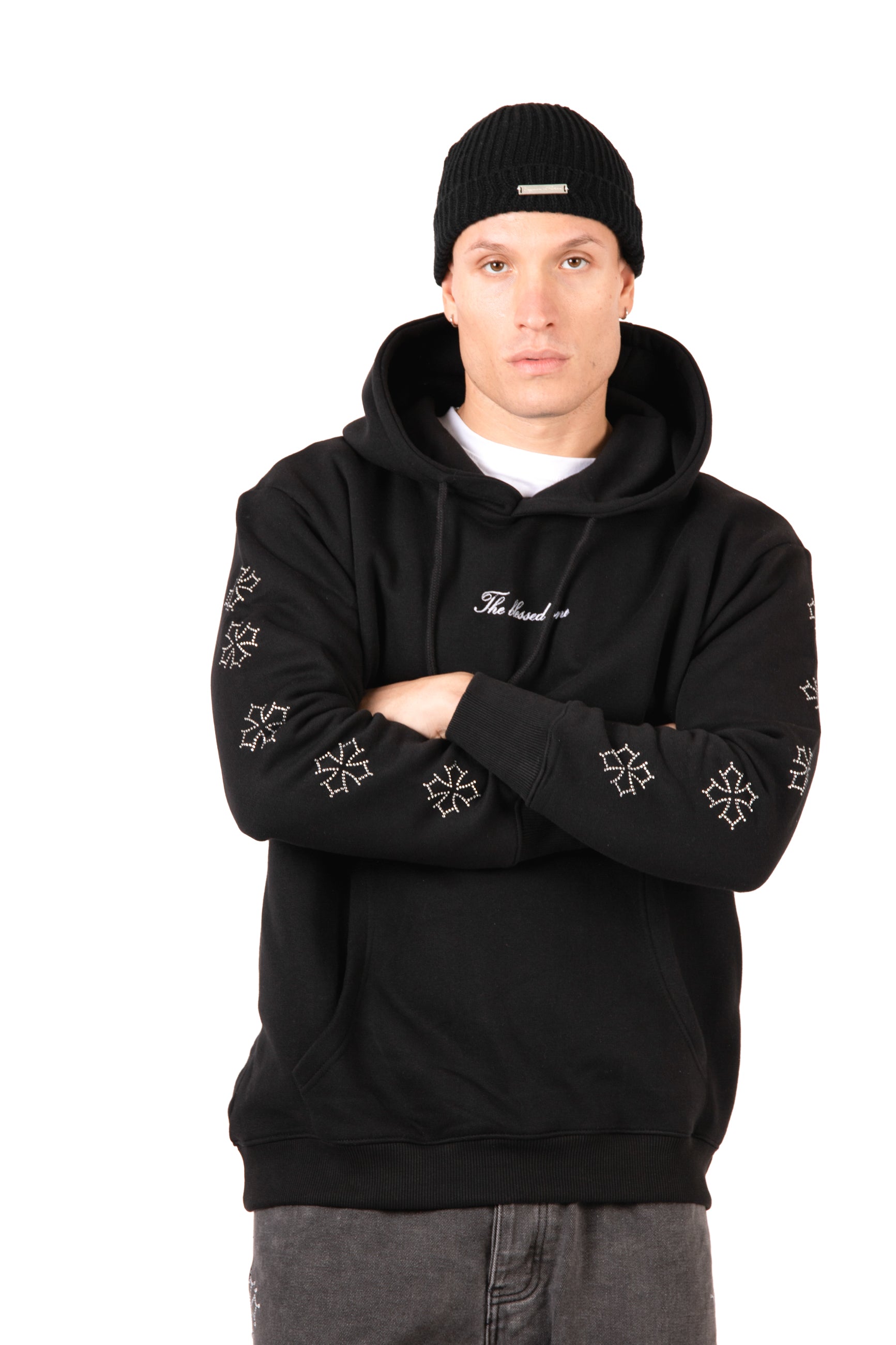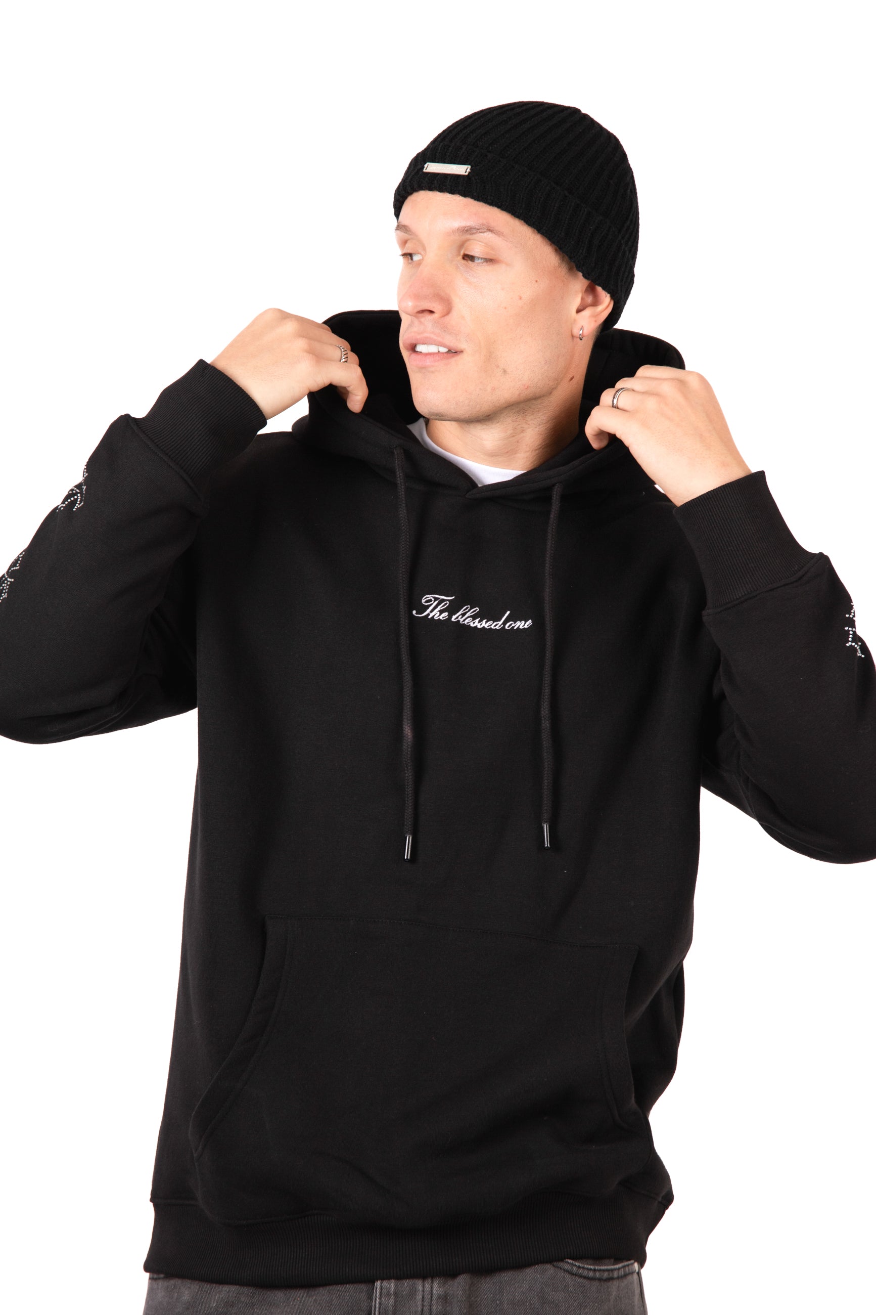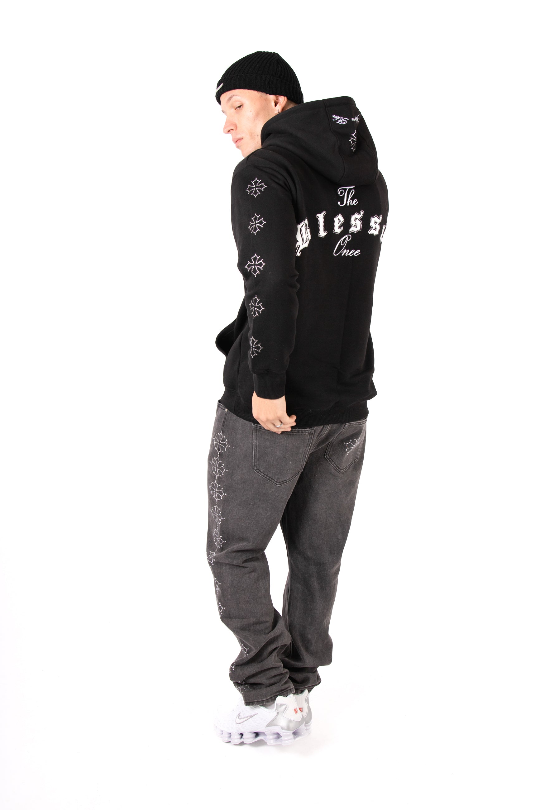 Black Rhinestone Embellished 'Blessed' Motif Hoodie
