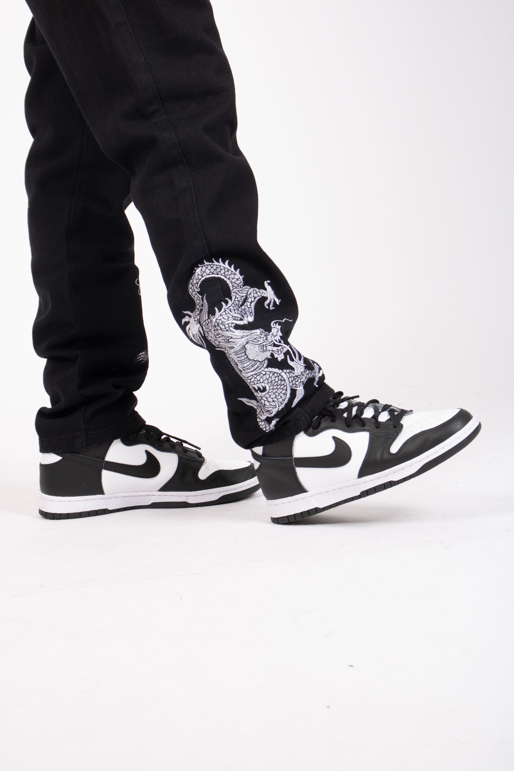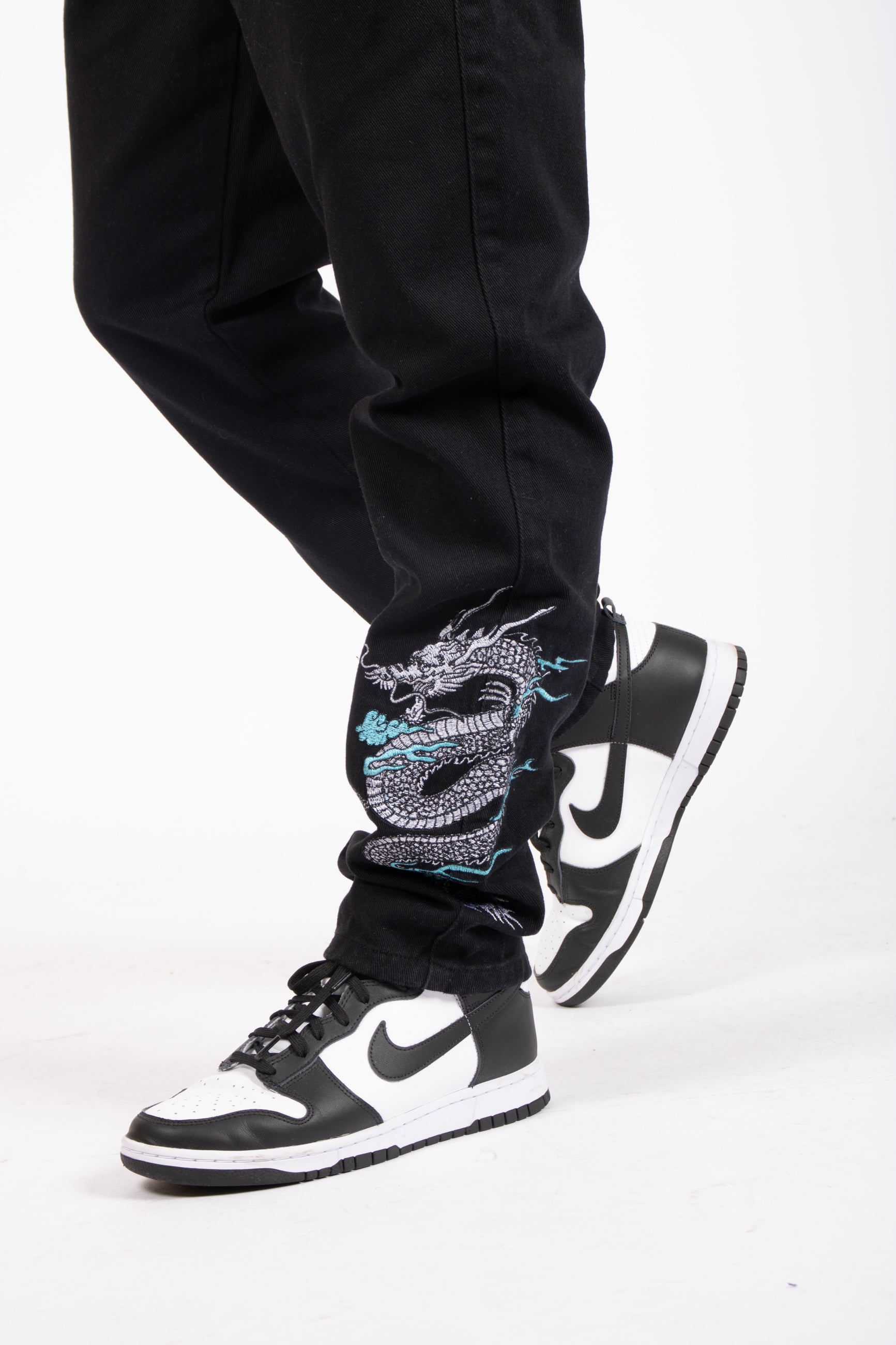 Dragon Embroidered Straight Leg Jeans