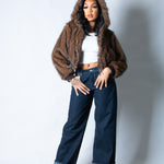 LNP Brown Fur Cropped Hooded Jacket