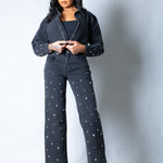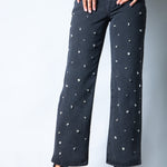 LNP Straight Leg Mid Rise Embellished Jean in Black
