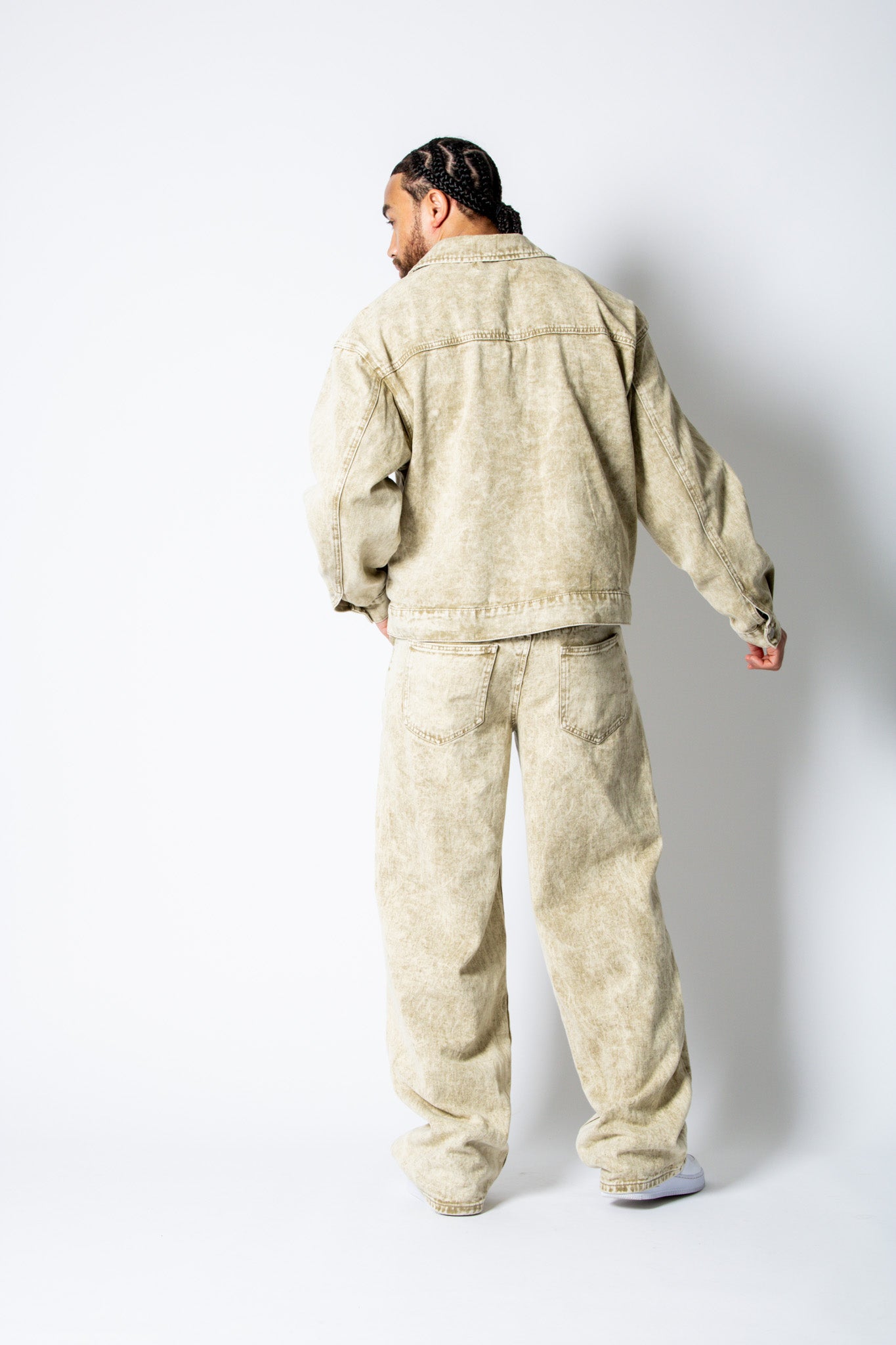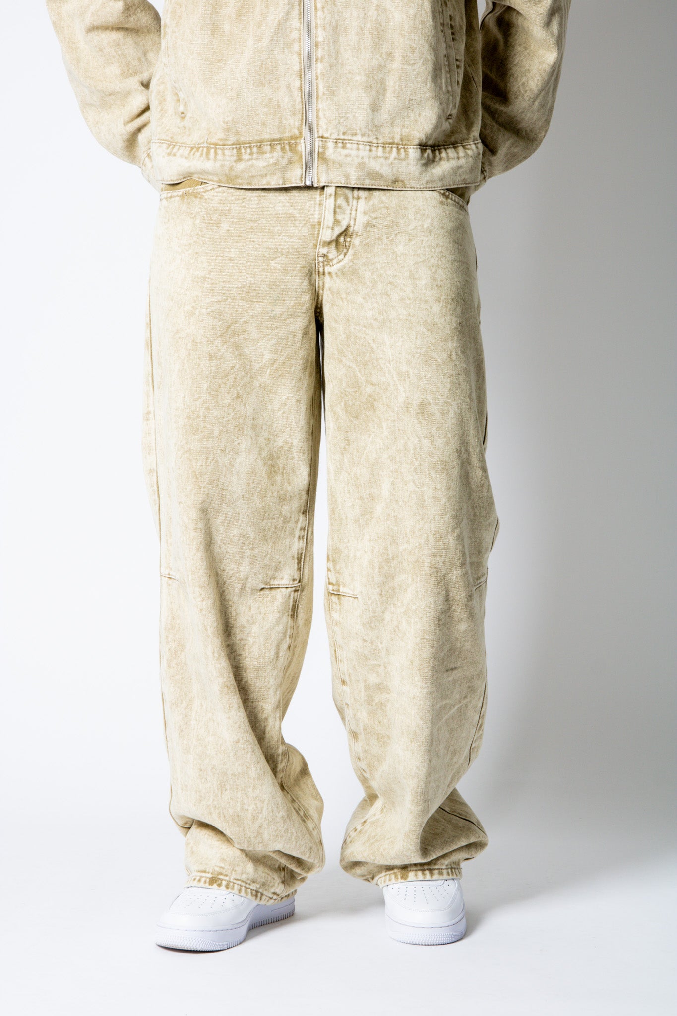 ONYX - Relaxed Baggy Acid Wash Beige Jeans
