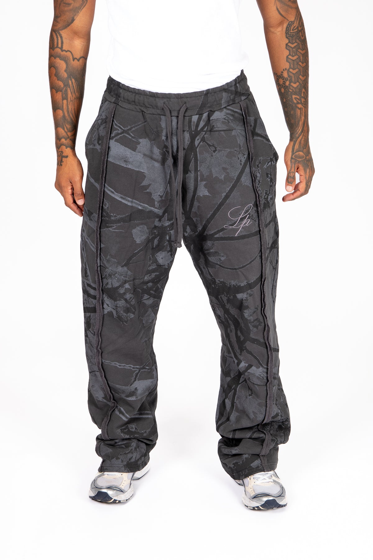- Straight leg with slight stack at hem